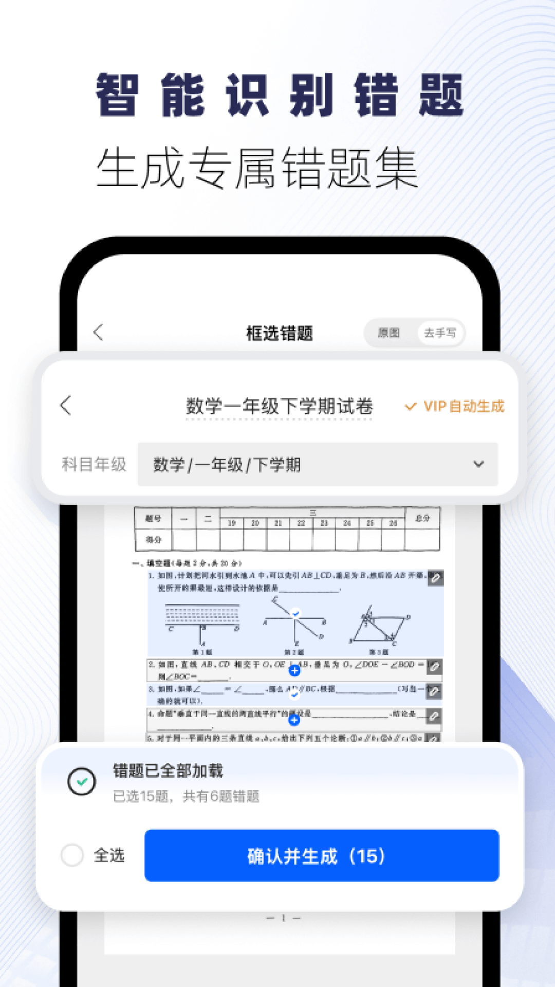 * 期末复习错题难找,手抄错题又麻烦,轻轻一拍,保存电子版错题本,轻松还原空白题目