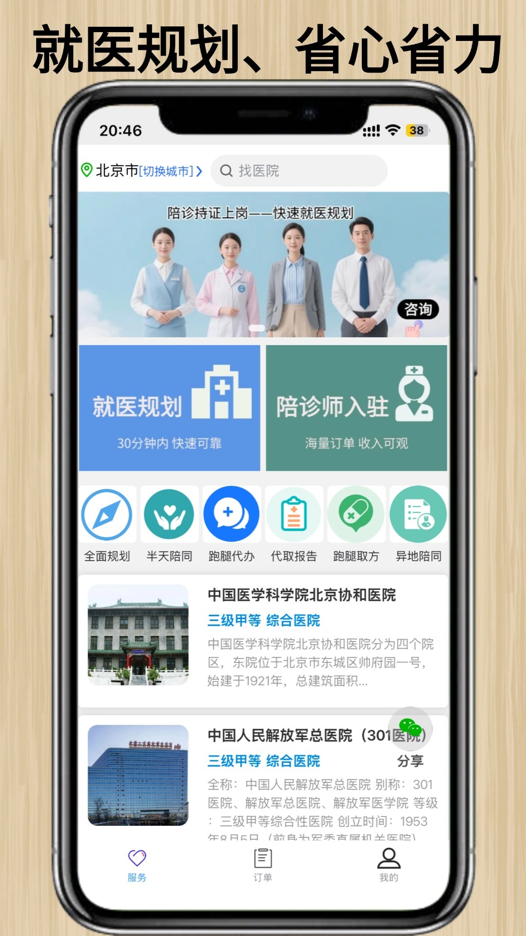 陪诊,看病,挂号,住院,陪诊挂号住院护工陪同异地就医备案医保优享陪诊疗安心悦伴万佳师尚个护医眼科护士师之约养老工上门输液居家护理代挂号无忧医院咨询预约健康扶馨陪诊呗曹操陪诊汇好帮手金牌网服务生活App
