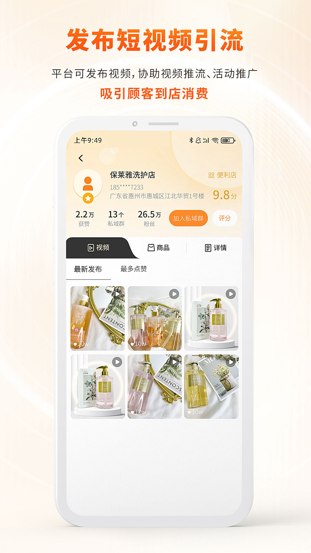 柴米同城平台提供视频发布功能,协助视频推流引流、活动推广,吸引顾客到店消费。