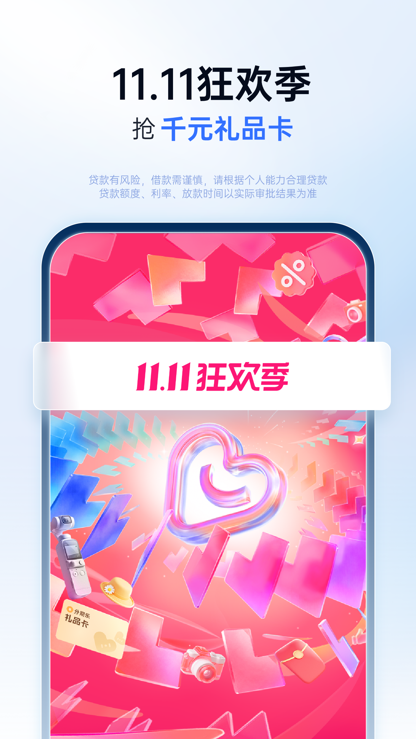 分期乐是乐信旗下倡导年轻人有度消费的分期消费平台,以更懂年轻人、更有安全保障、更有温度的产品体验和金融科技服务,让年轻人可以享受安全、稳定、便捷的现金借钱、分期购物和分期还款的金融服务,已有超过1.5亿用户选择分期乐。