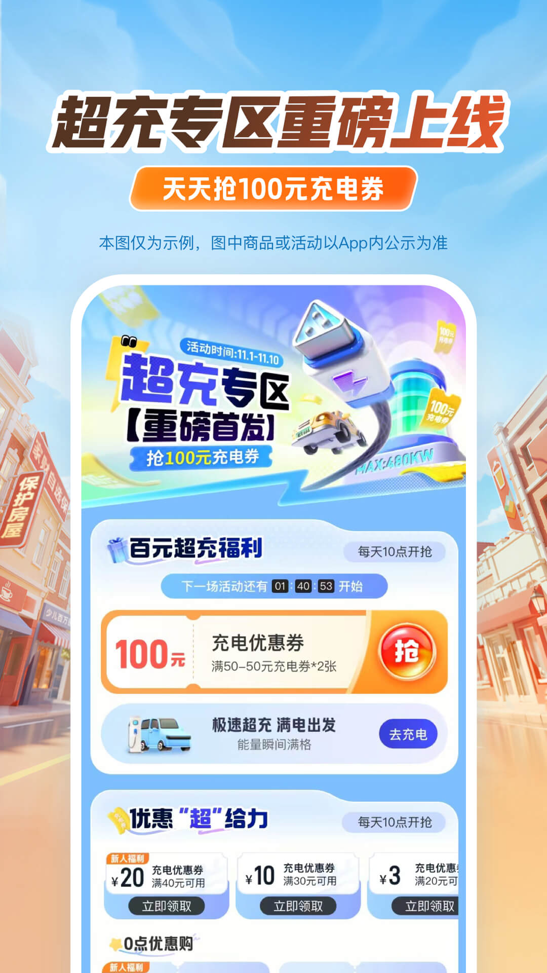 4、【超充专区重磅上线】天天抢100元超充礼包,手慢无!服务新客1元购20元充电券包!