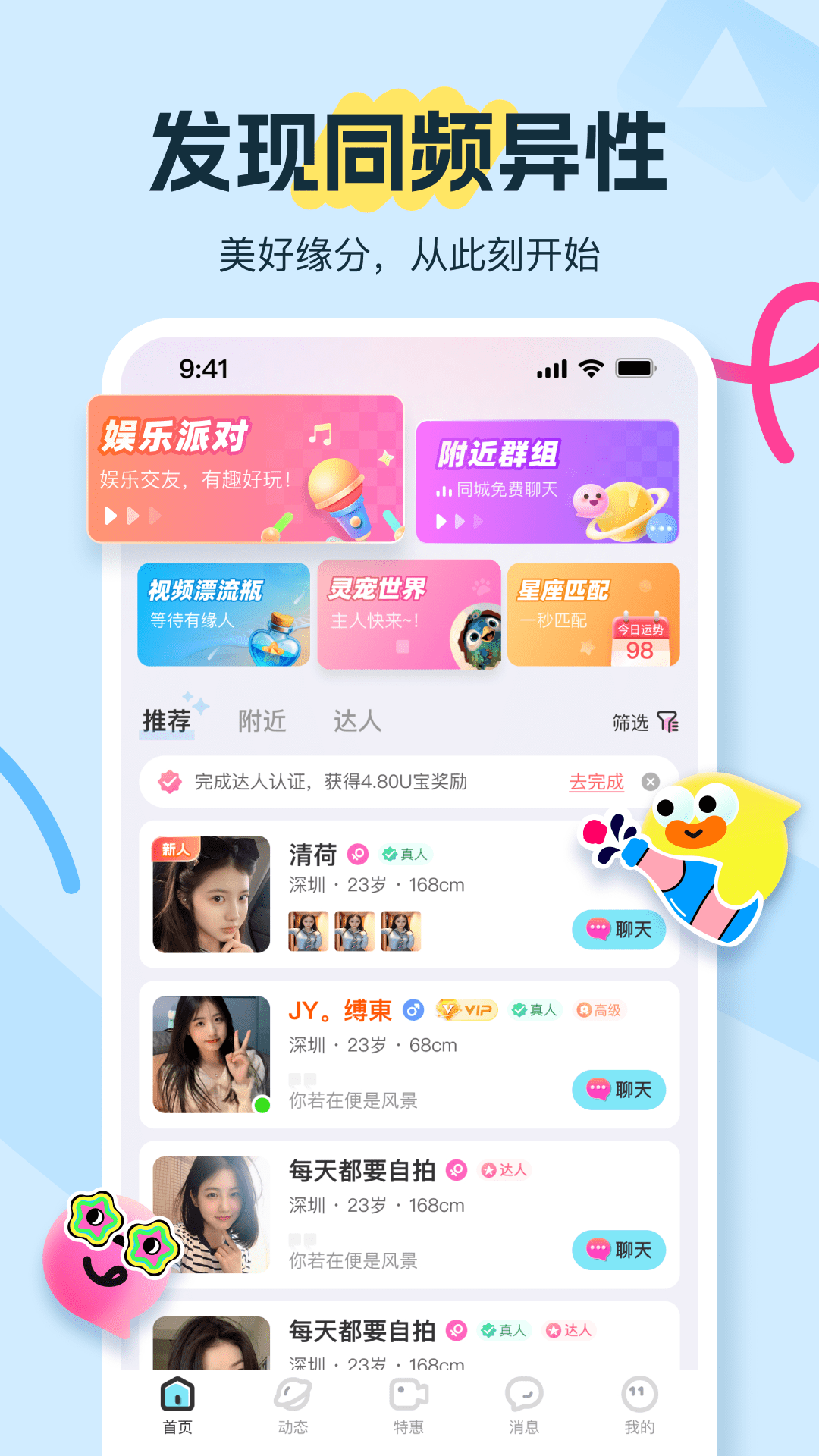 友趣是一款以真人实时视频为核心,融合多元娱乐场景的综合娱乐社交平台,为你带来全新的社交体验。在这里,每一次互动都充满温度与惊喜,让你在虚拟世界中也能感受到真实的连接与快乐。