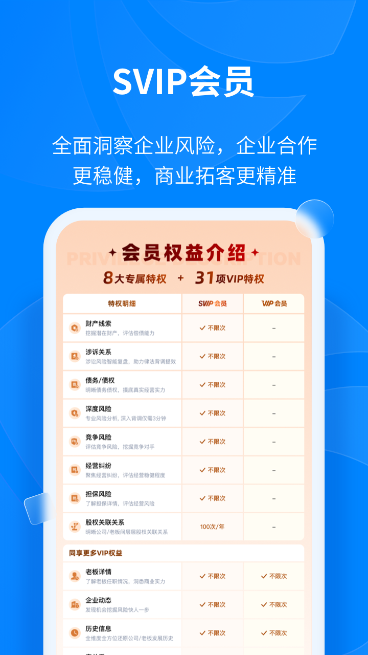 作为老板和商务精英首选的商查神器,天眼查覆盖百余种应用场景,天眼一下,面试不被骗,跳槽不被坑,机会更靠谱,决策更放心。查老板信用、资本关系、企业商机、潜在风险,就用天眼查!