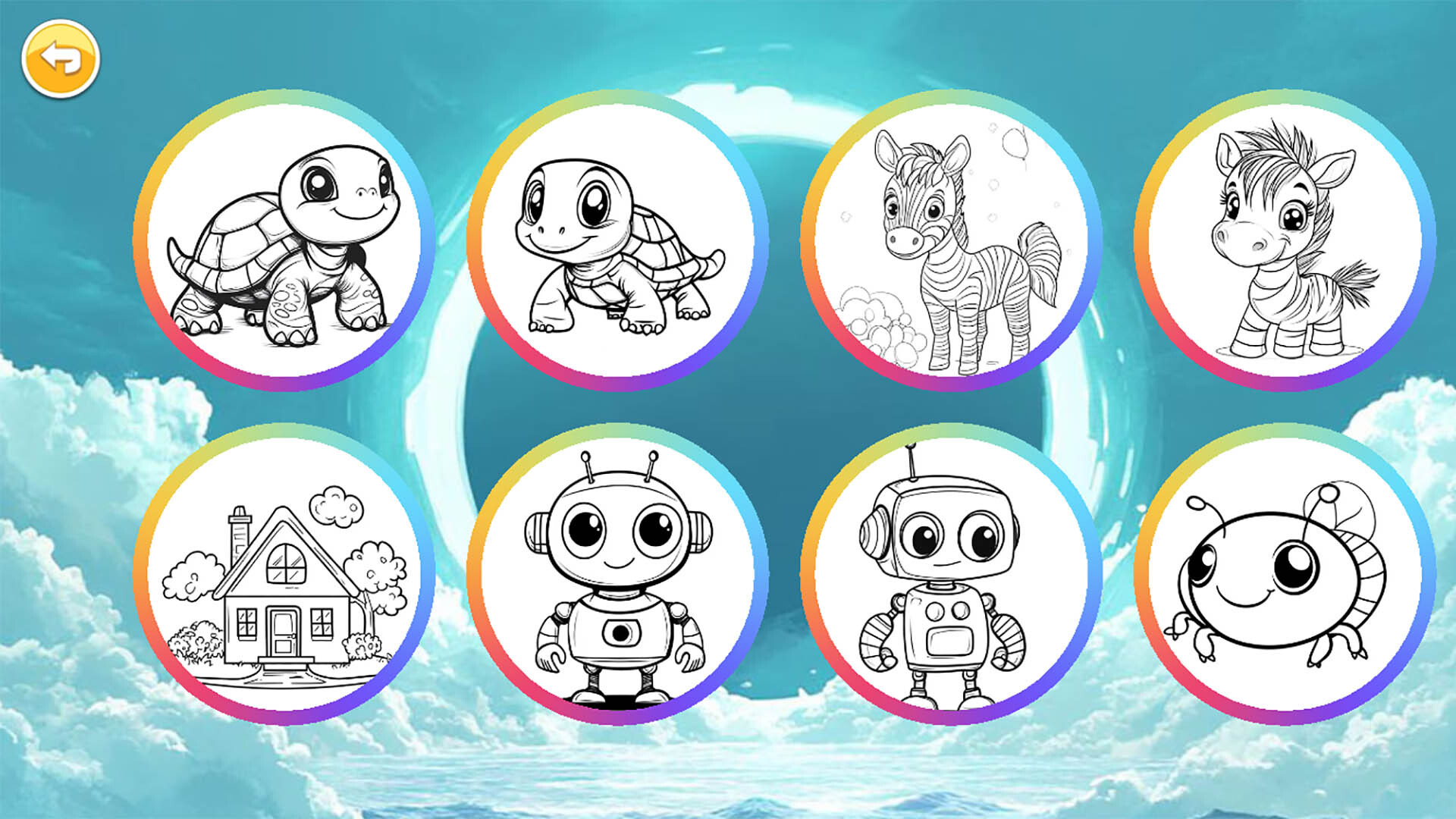 3、丰富的涂色绘画场景:动物世界、海洋、昆虫、机器人等。