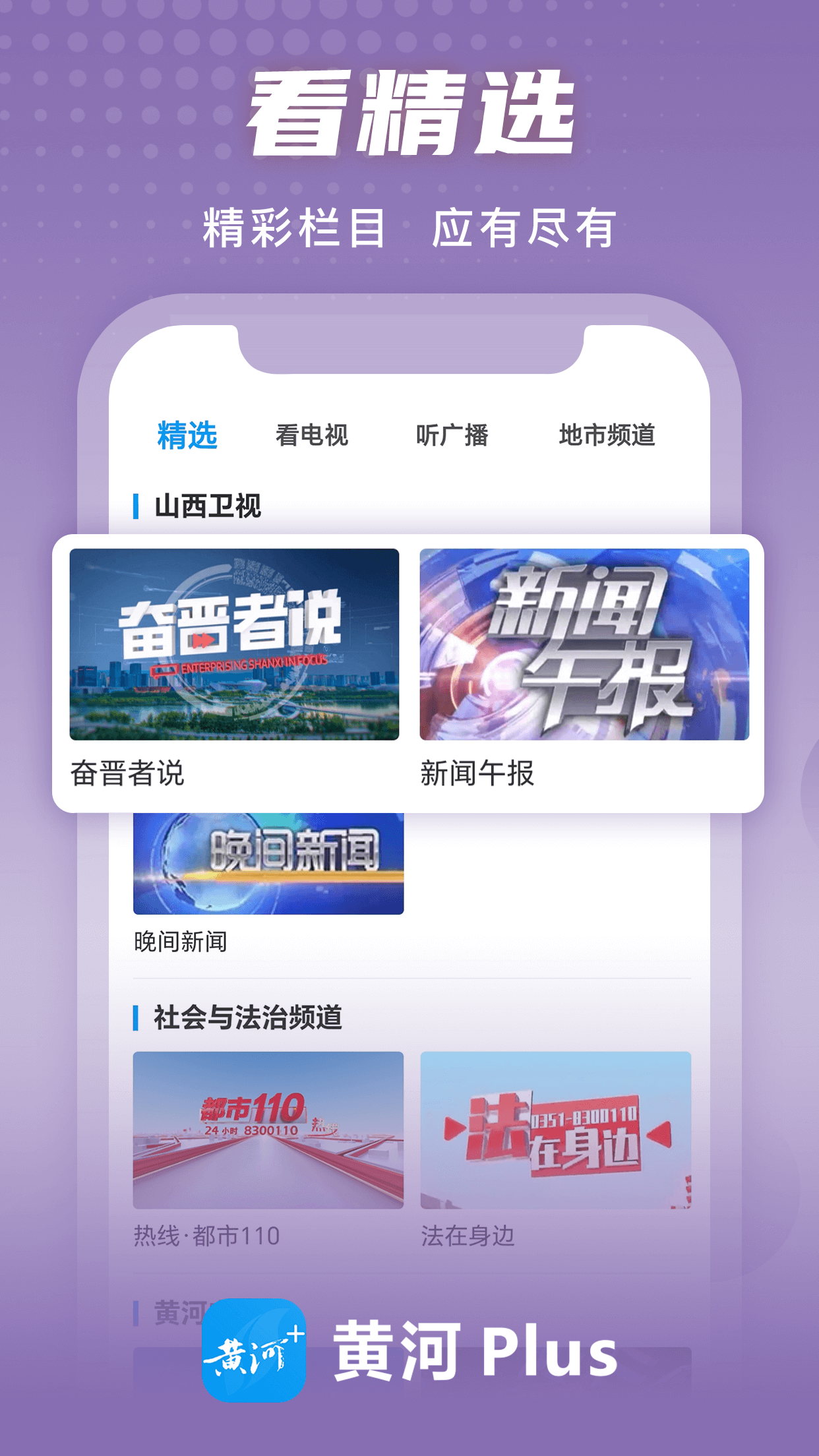 “黄河+”是山西广播电视台旗下的民生综合服务融媒体客户端。立足山西广播电视台强大的内容原创生产能力,汇聚全国全省媒体联盟的优质资源,打造集时政要闻、民生新闻、便民服务、文旅休闲、交通娱乐、健康体育等为一体的移动传播平台。大屏小屏互动、线上线下融合,传递党和政府声音,讲好山西故事,引领舆论、启迪思想、传承文化、服务人民,打造新型主流媒体,成为山西广播电视台转型升级的新引擎。