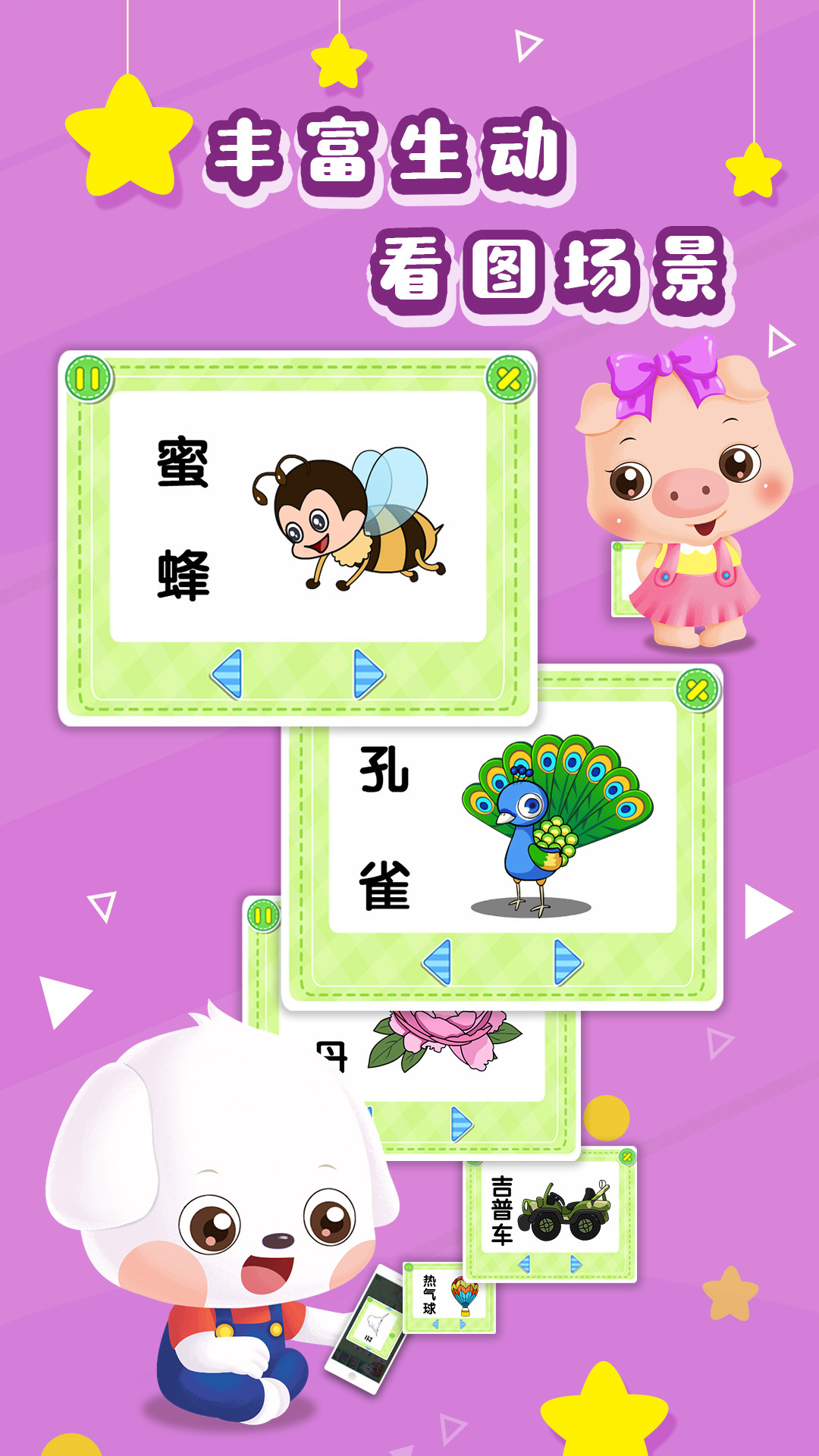 (2)音画结合的形式,教孩子认读及辨识常见事物的名称和基本形态,能有效培养孩子的好奇心和认知能力。