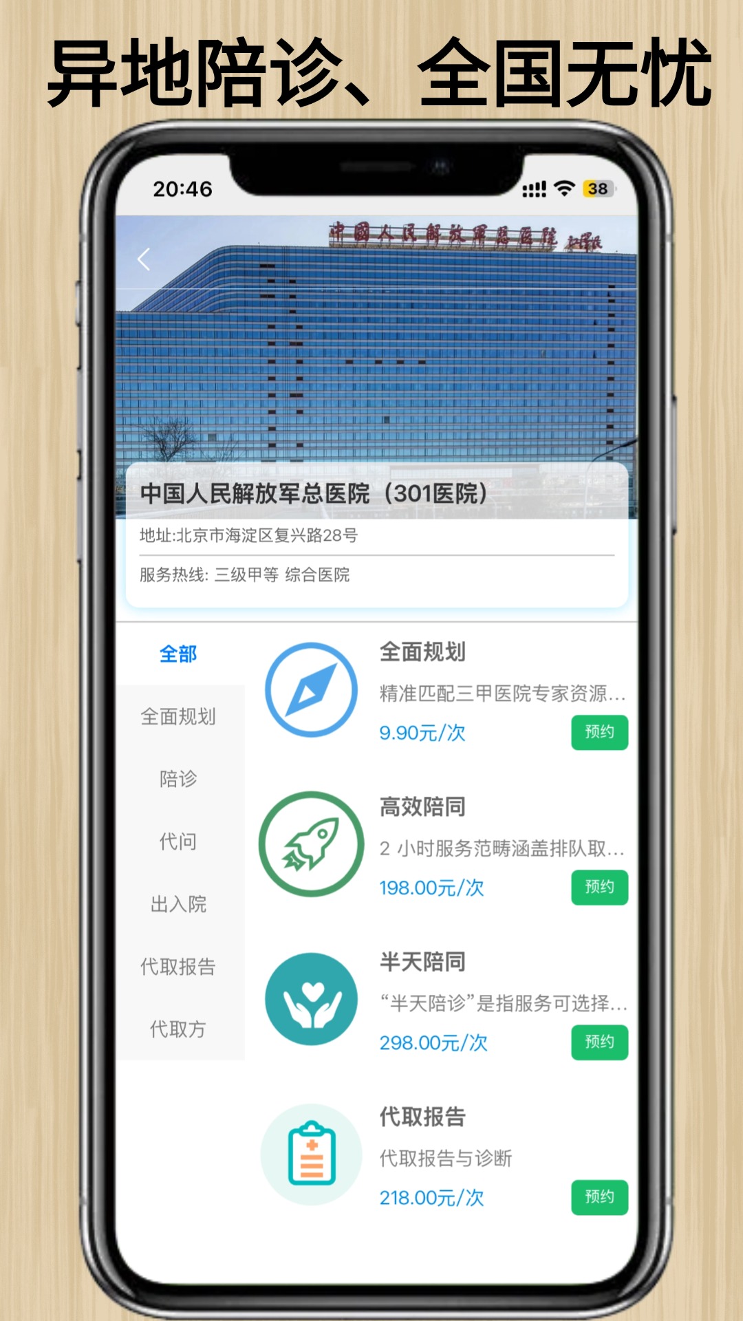 - 全程陪诊:专业陪诊师协同完成取号、就诊、检查、取药全流程