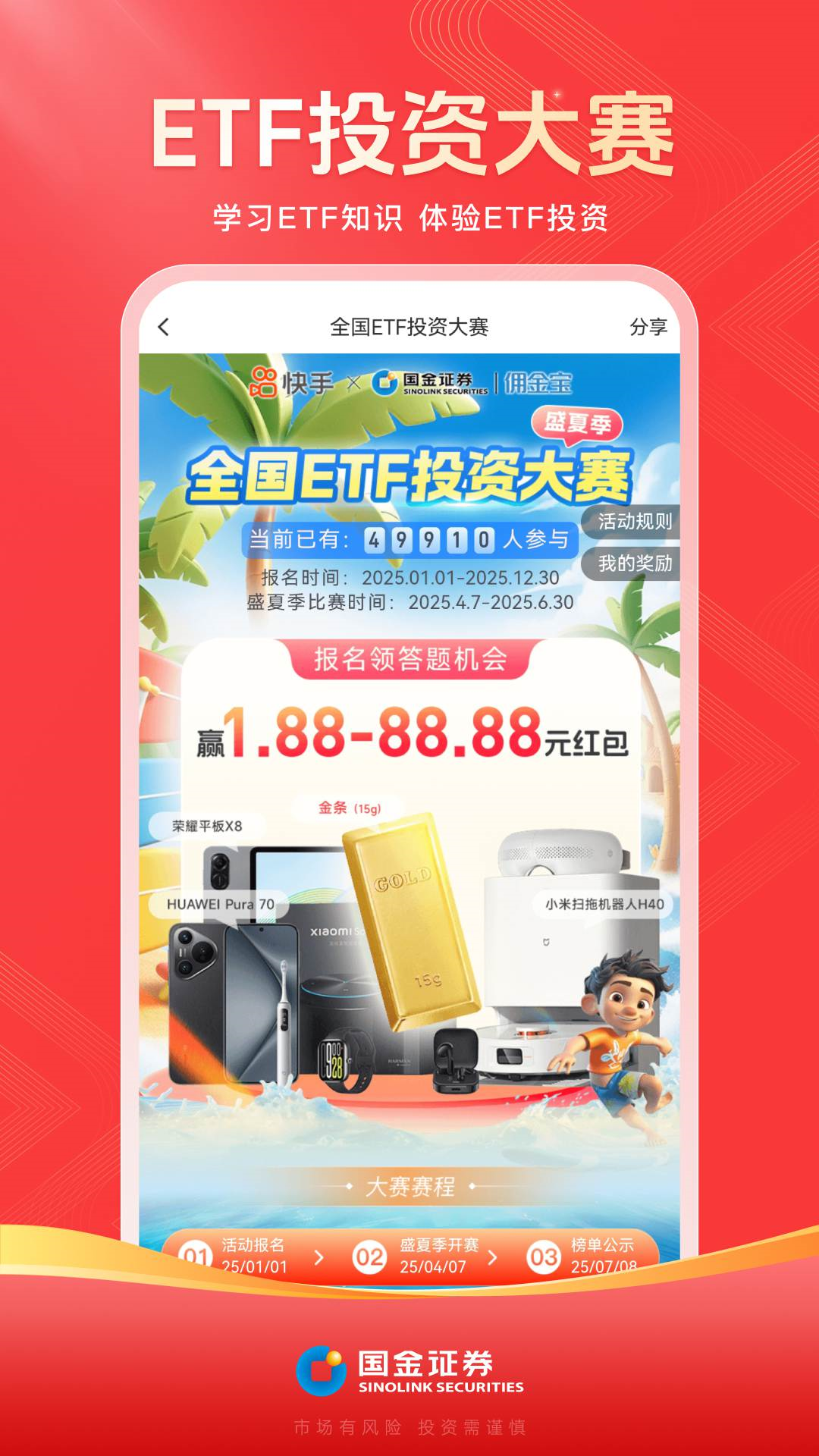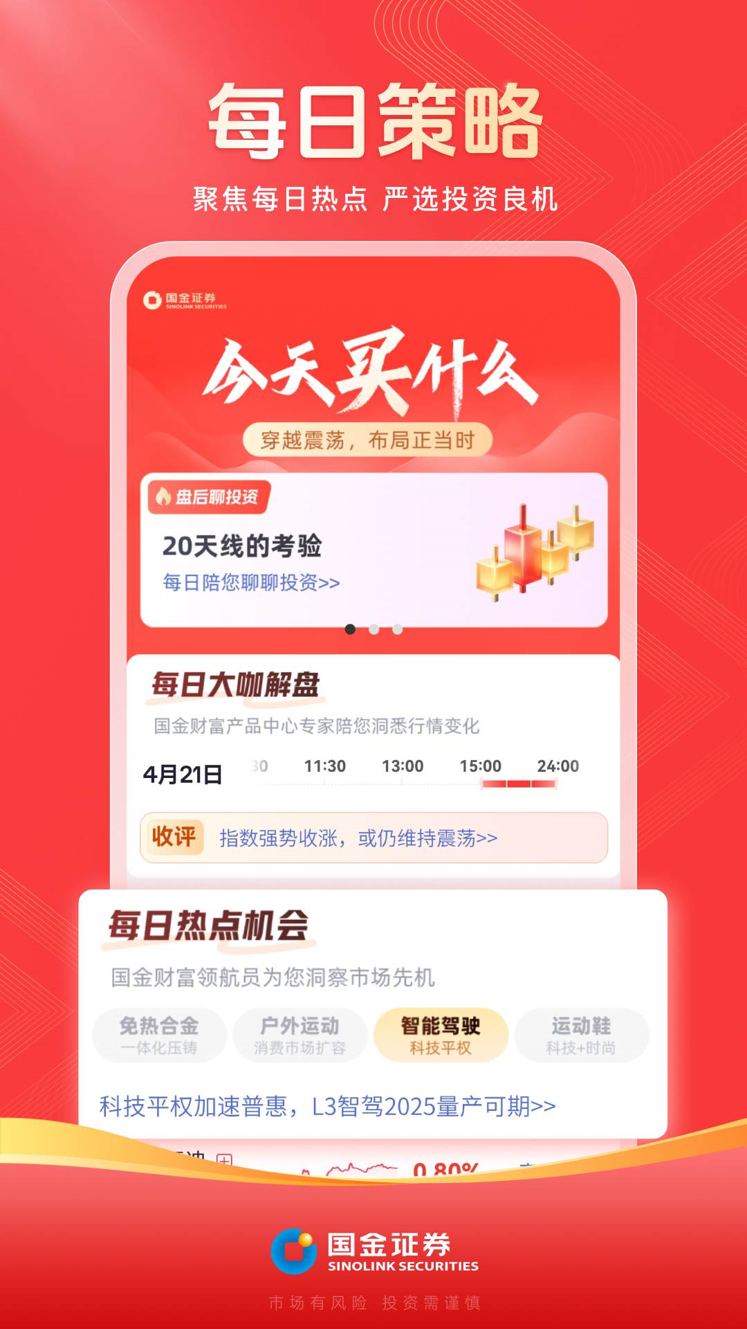 6.更丰富的用户互动服务:提供7x24小时智能客服、模拟炒股、ETF基金大赛、国金积分、国金财富号等互动服务和活动