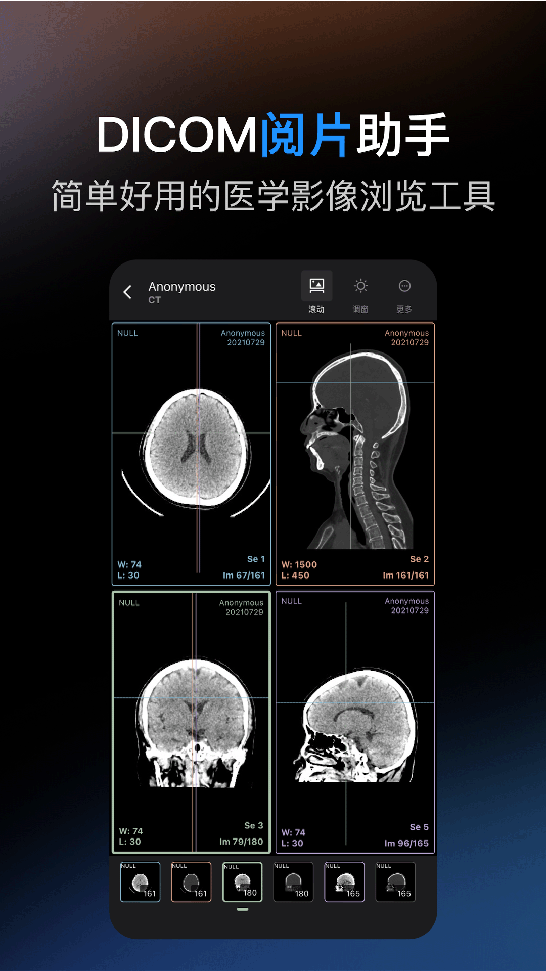 专为医学影像设计的专业阅片工具,支持DICOM格式一键导入,快速浏览。无需复杂配置,轻松实现影像查看、窗位窗宽调整、图像缩放旋转,助力临床诊断与教学更高效。