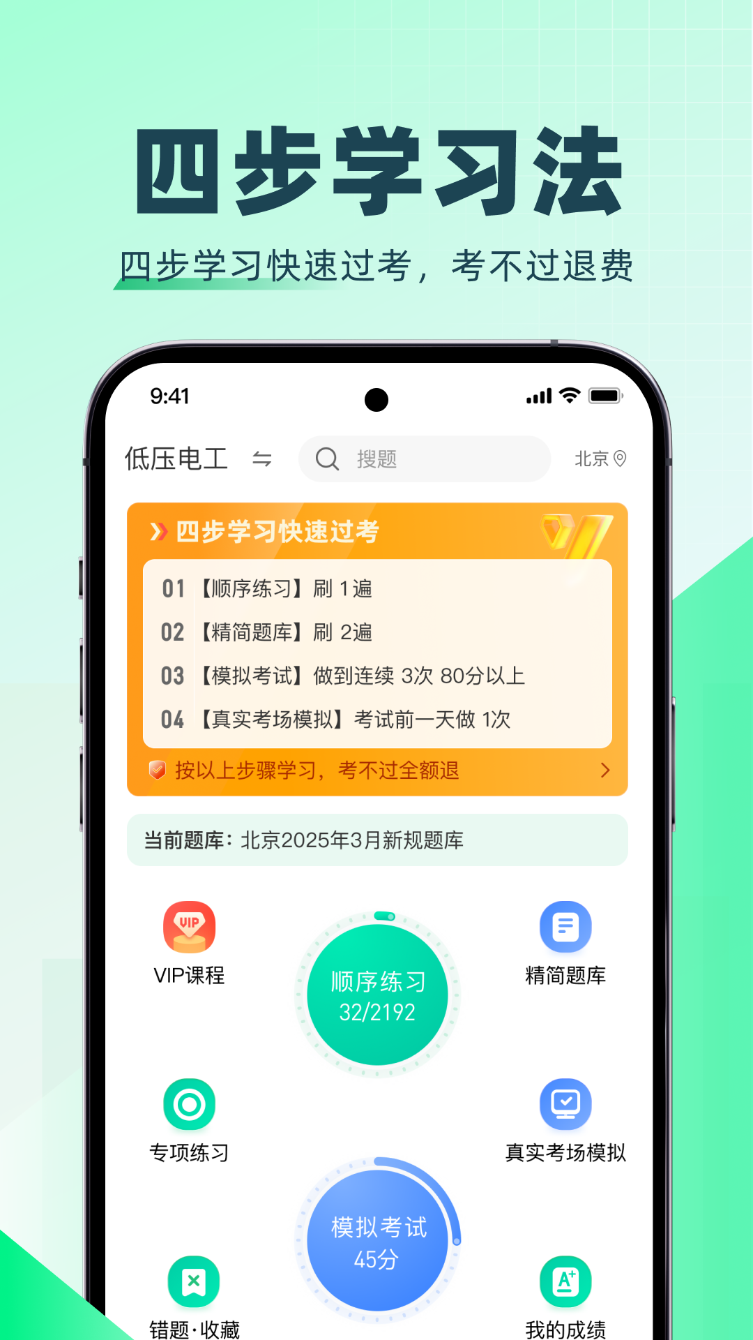 1、顺序练习:最新、最全、最准的特种题库,紧跟考试大纲,实时在线更新;