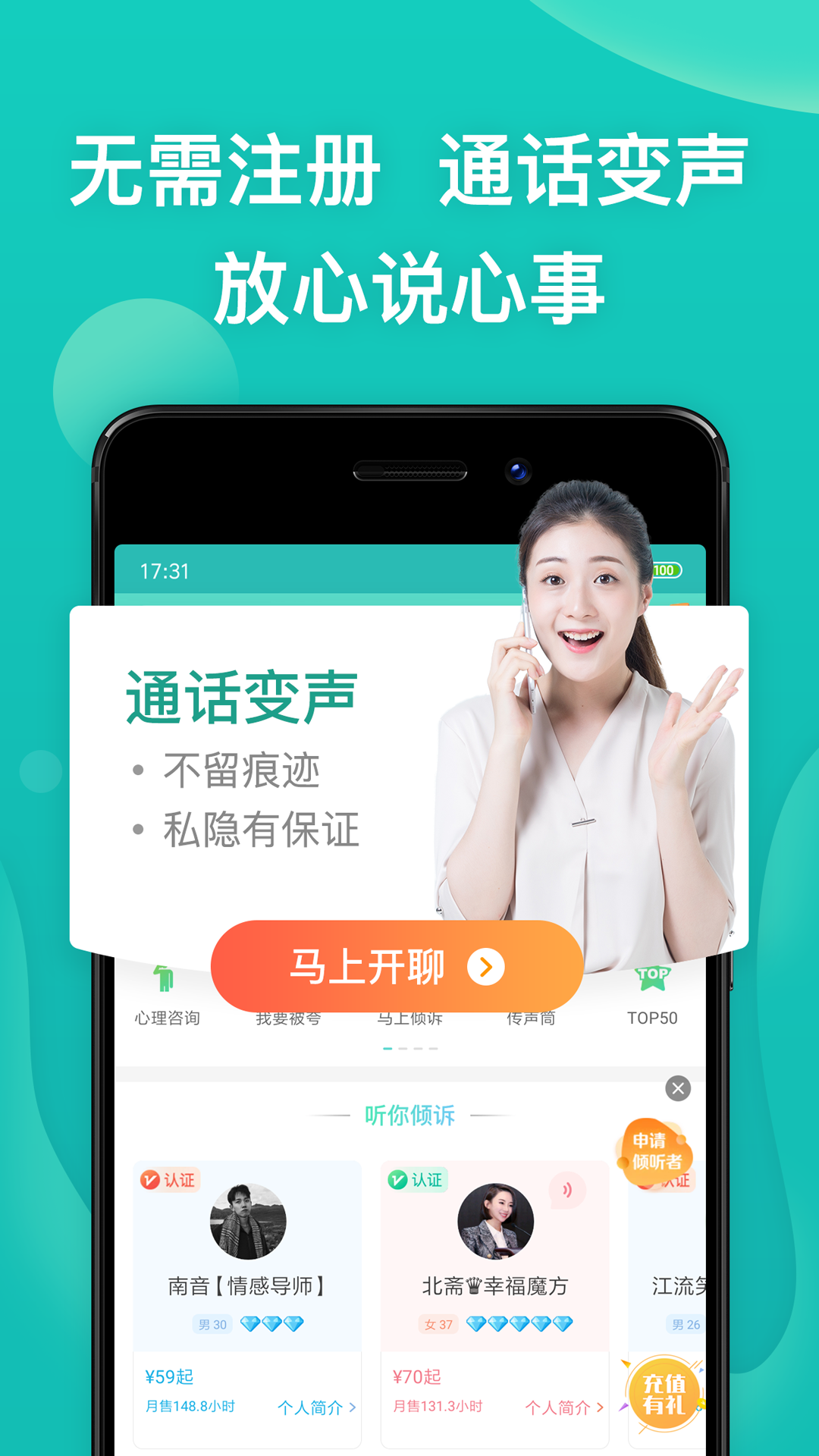 【隐私安全】1对1匿名倾诉,无须注册,文字通话不留痕迹,还支持通话变声哦。
