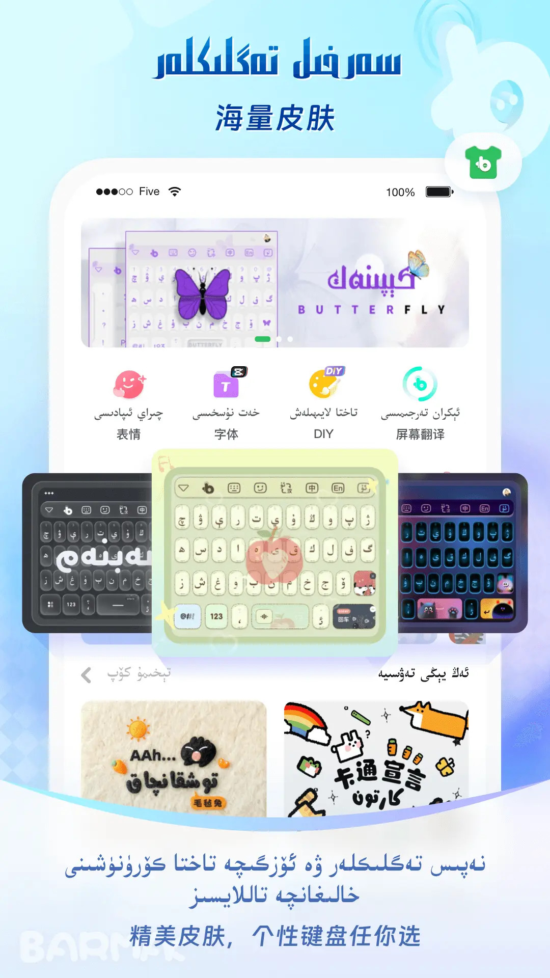 BARMAK维语输入法(uyghurche kirguzguch)是一款支持老维语、拉丁维语、汉语、英语的多语言输入法,为新疆和所有使用维吾尔语用户提供更舒适便捷的打字体验。