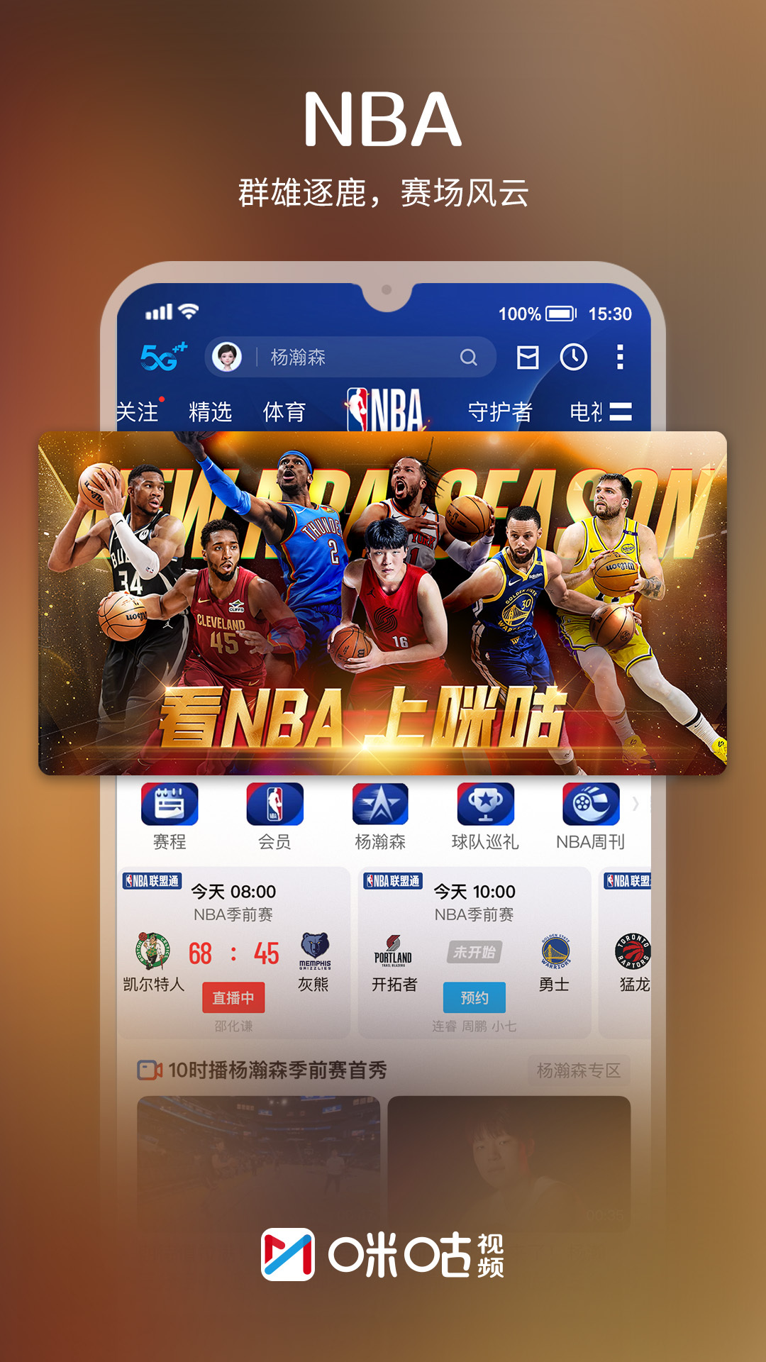 各大赛事精彩不停歇,看各路豪强实力对决!大咖解说、4K超高清,海量热门赛事直播锁定咪咕视频!