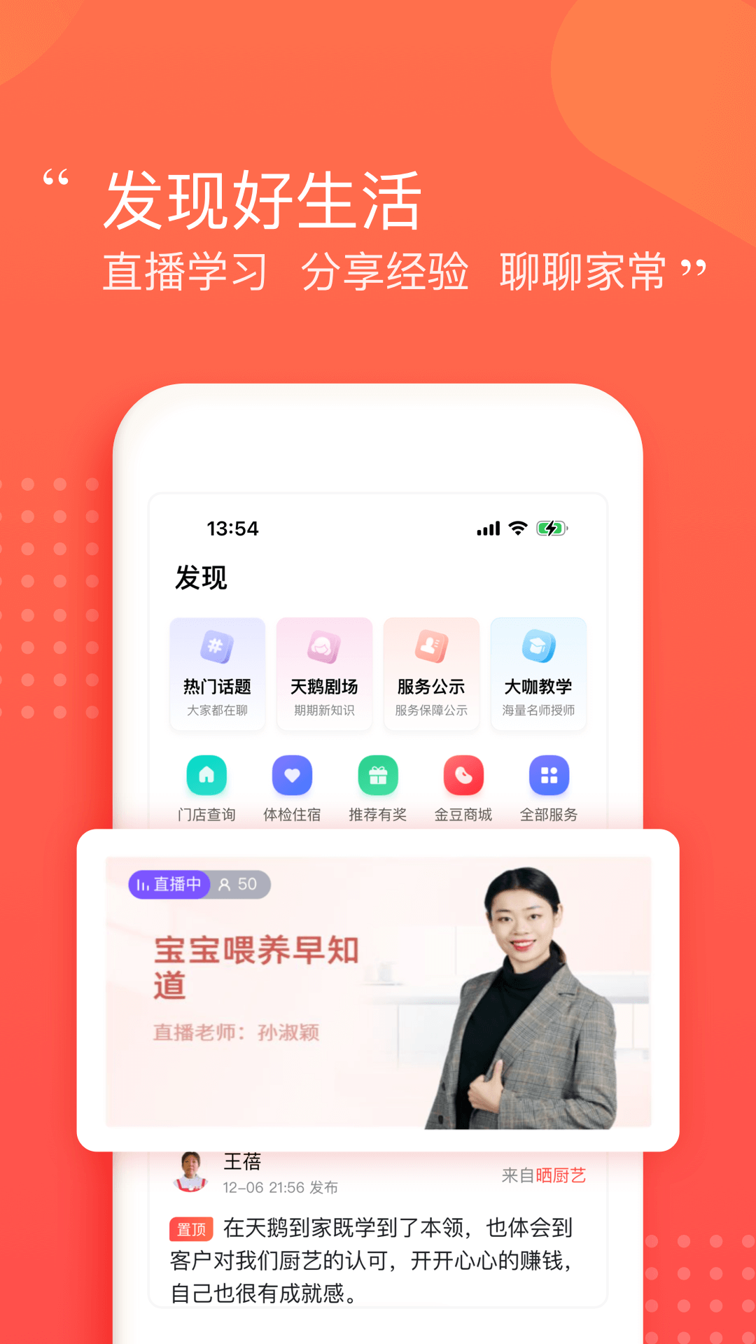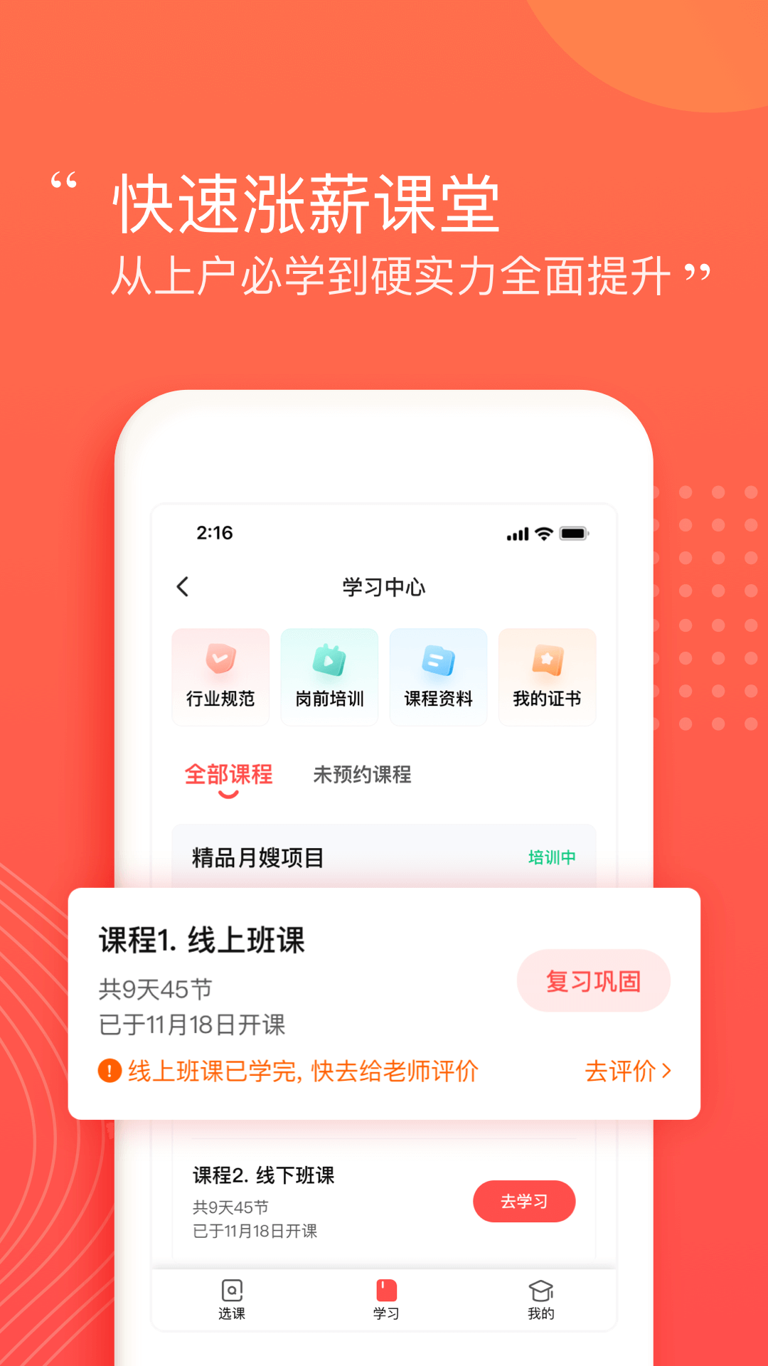 2、阿姨课堂:大咖直播,上户指南,学习练习同步进行,专业技能涨知识。