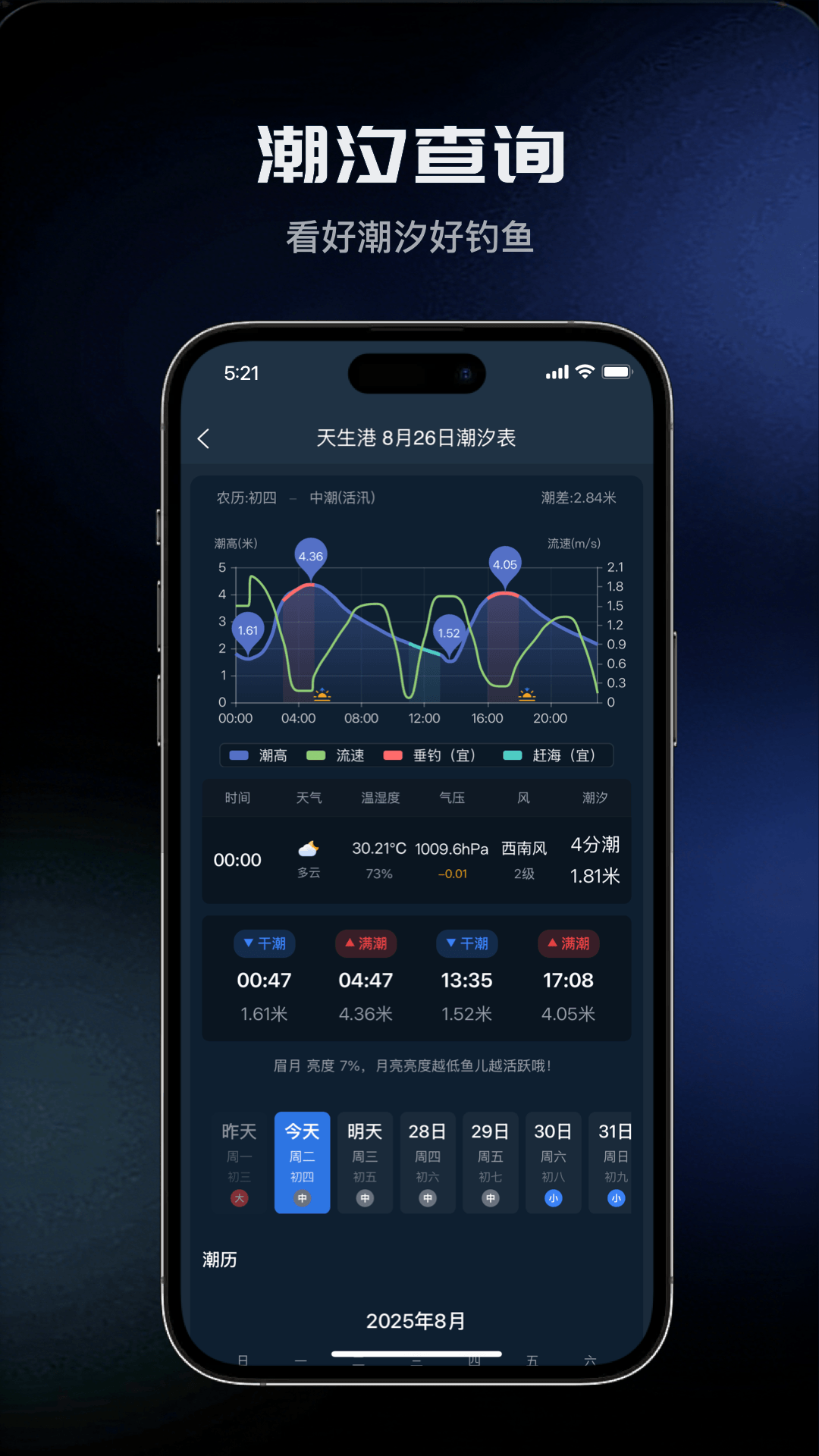 全球潮汐站实时查询,涨落时间精确到分钟,海钓必备