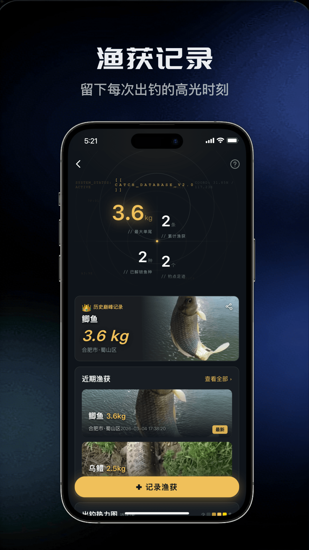 自动生成个人出钓档案 & 渔获成长图谱