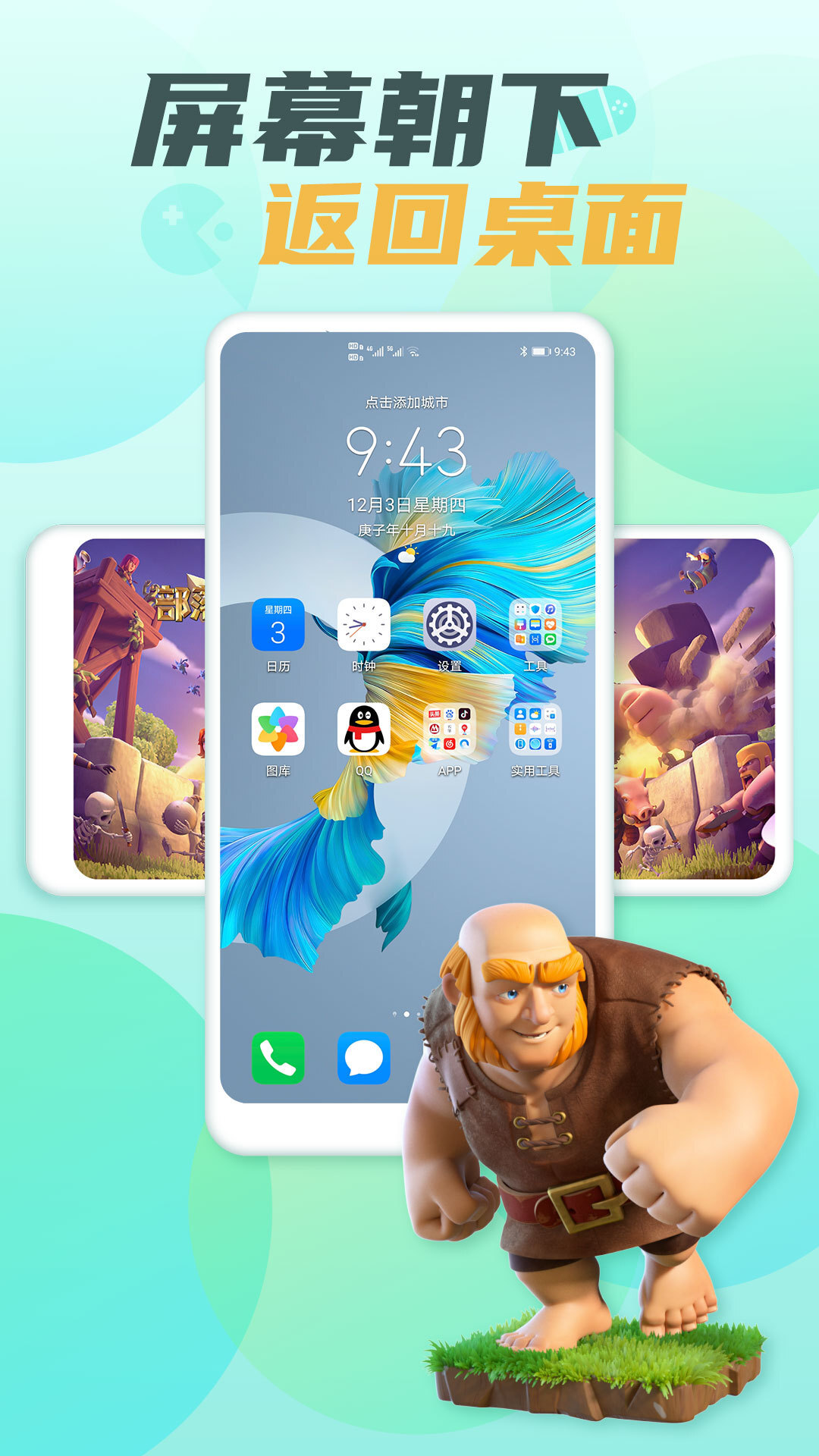 【屏幕朝下 返回桌面】