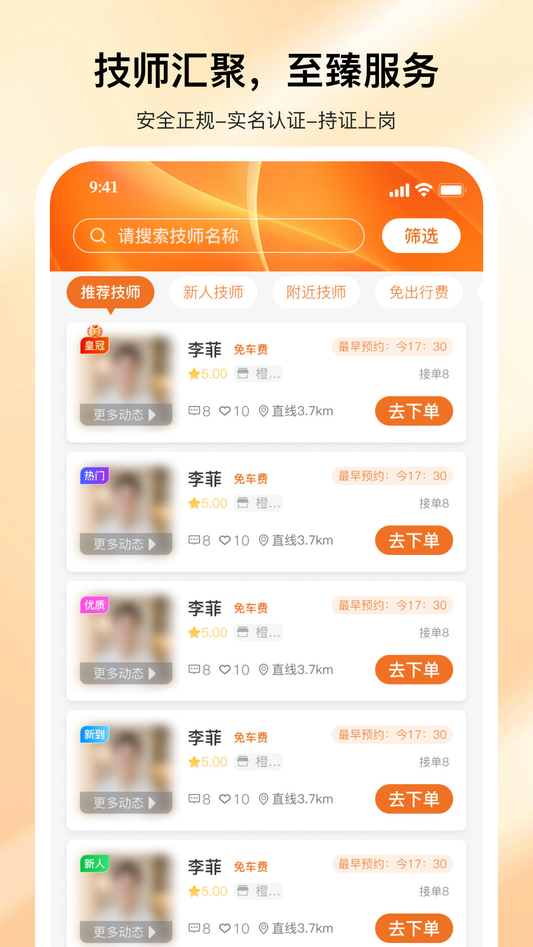 智能匹配周边持证技师,可按手法、经验、评价筛选,轻松找到合适服务者。