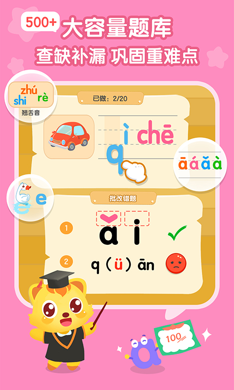 1.【趣味学习】寓教于乐,学拼音更轻松!拼音字母音形演绎、拼音声调小车、拼音字母描红、语音交互,50+种趣味学拼音游戏,激发孩子对拼音的学习兴趣,加上拼音记忆。