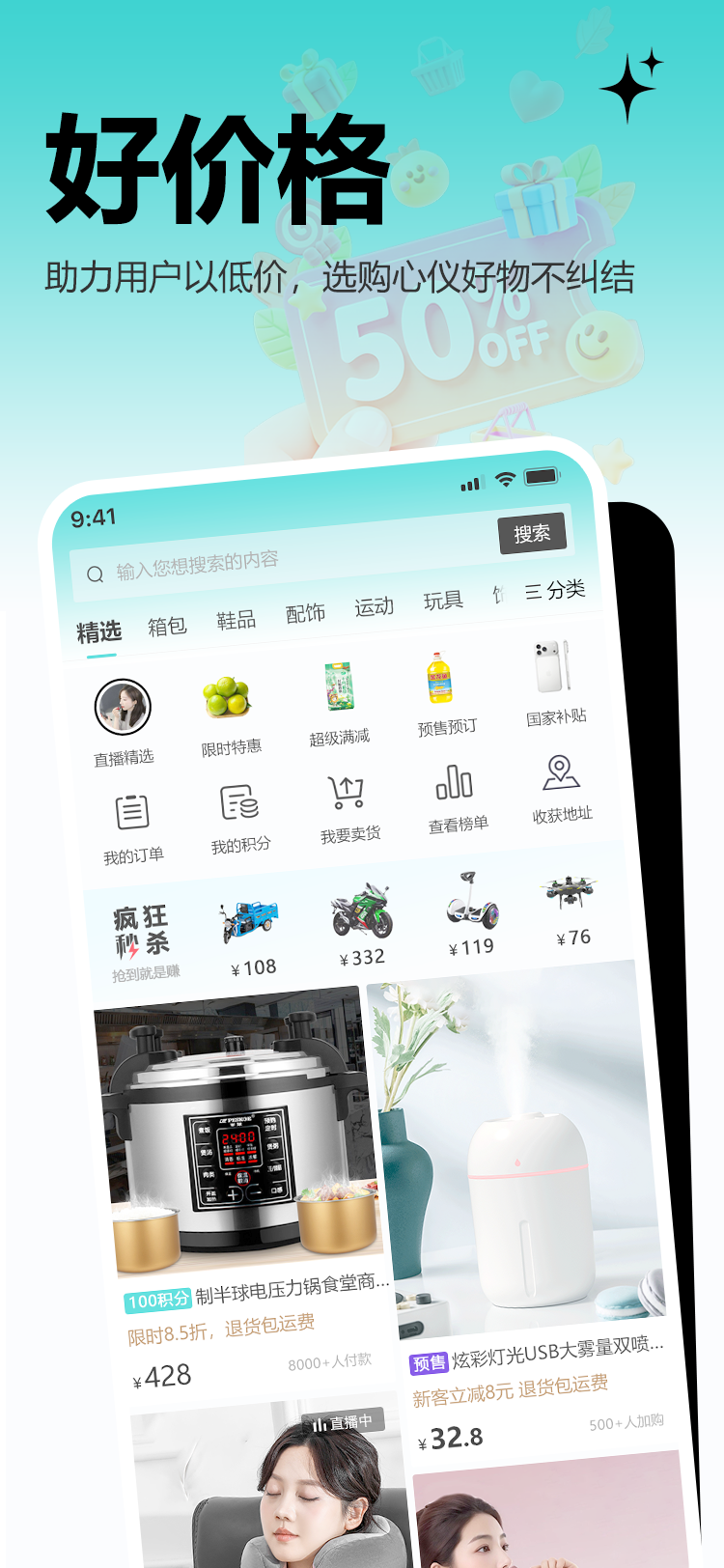 【积分当钱花,购物更省钱】购物消费、观看视频、评价晒单、完善资料等多种方式均可轻松赚积分,日常互动就能积累省钱资本,每笔积分直接抵扣订单金额,轻松解锁实惠购物新体验!