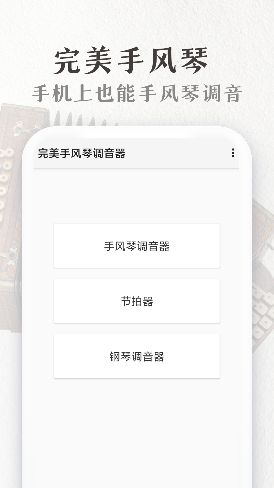 完美手风琴支持手风琴、钢琴、节拍器等多种调音应用软件,不论是手风琴小白还是演奏大师,都可以随时随地学习手风琴调音。