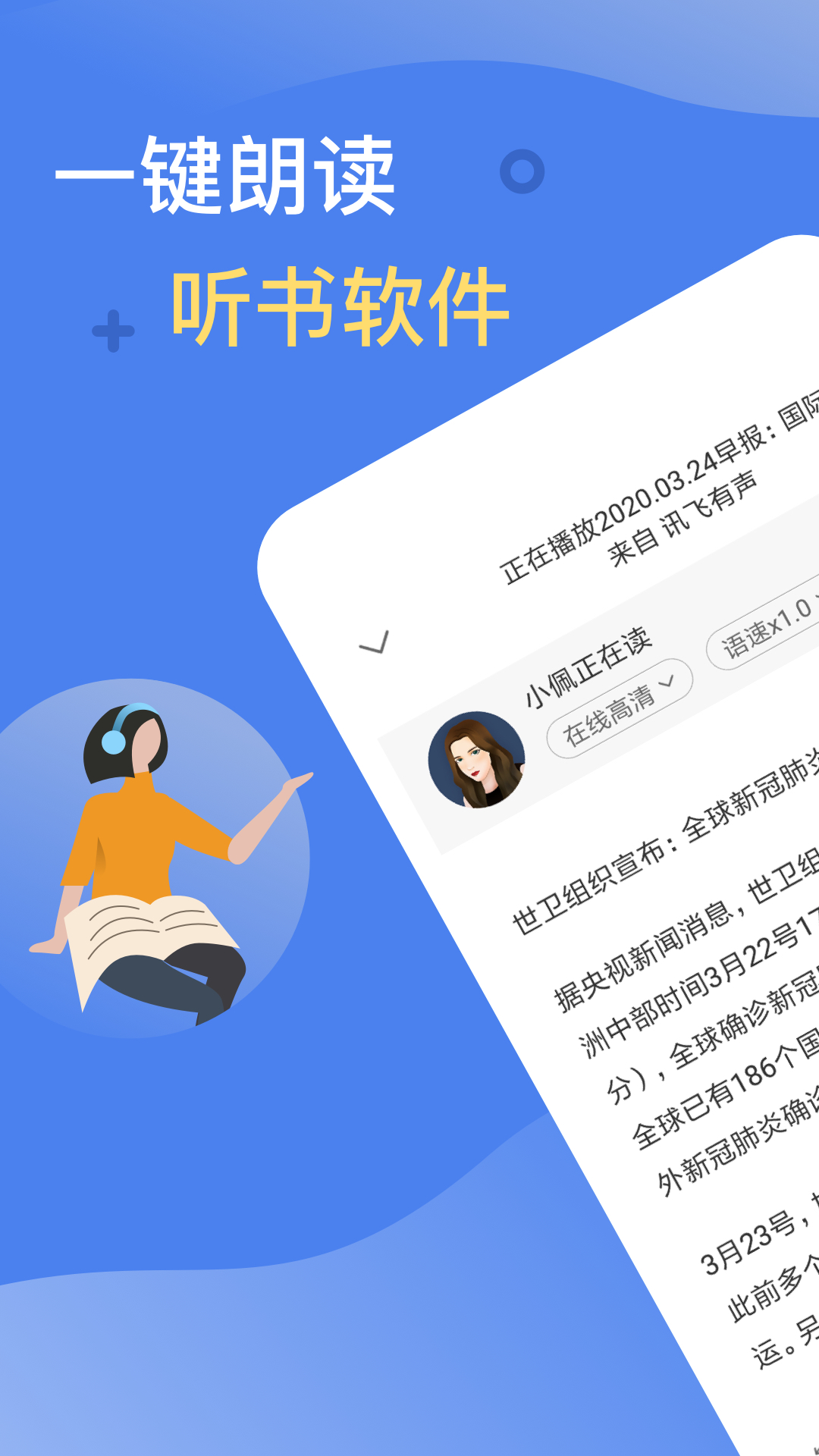 讯飞有声是一款帮助用户以“听”来获取信息的文字转语音朗读软件,由科大讯飞出品,现拥近百位A.I.主播,提供听网页、听文档、听文字、听图片、听书、听小说等多种格式的朗读功能,帮助管理碎片化时间,助力学习和娱乐。