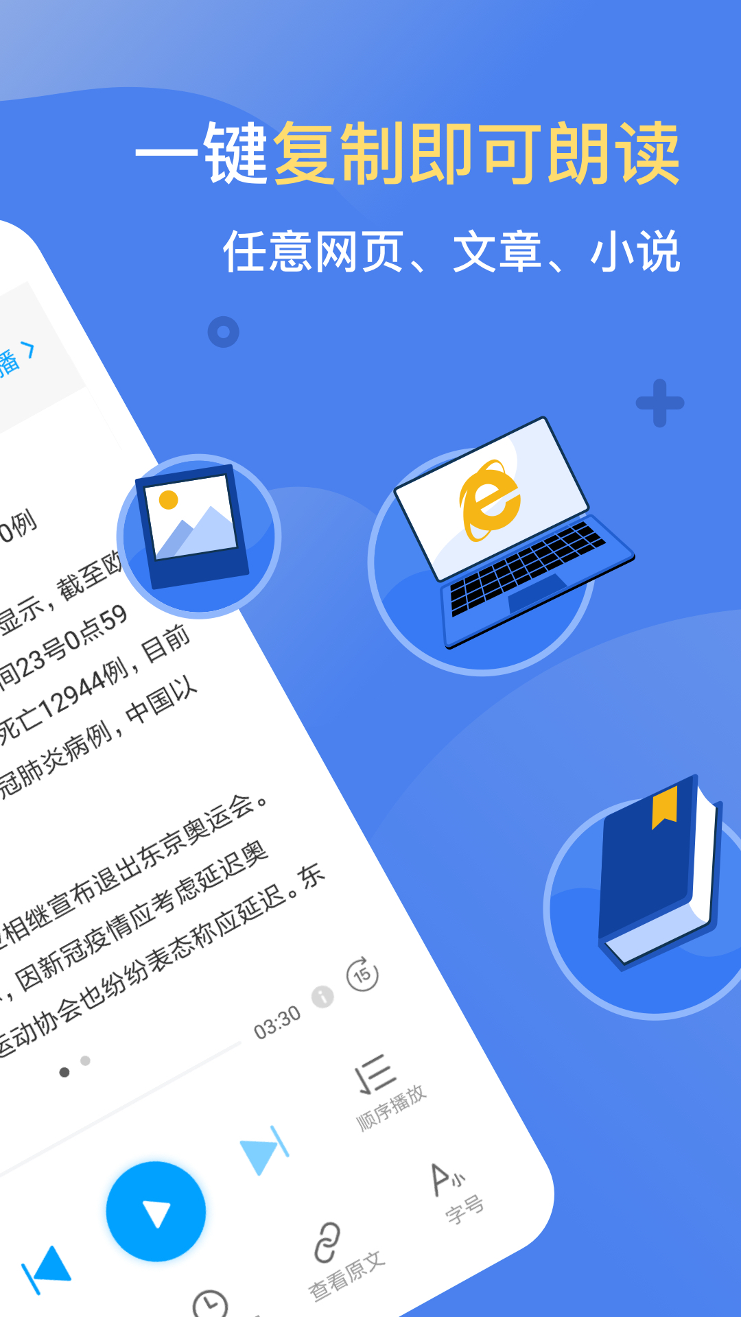 语音朗读:导入文档听、复制网页听、输入文字听、上传图片听,多种格式均能语音朗读