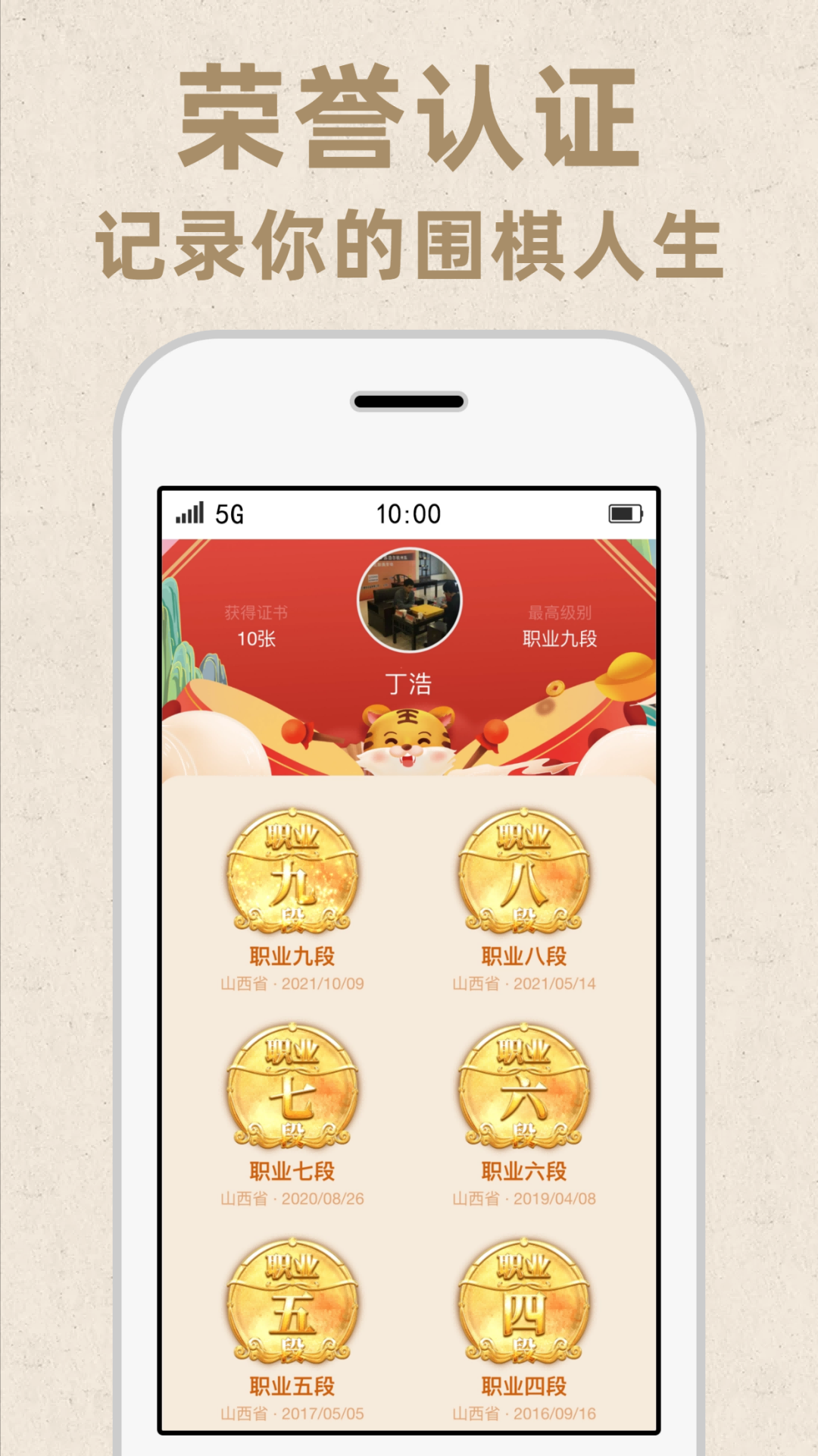 -荣誉认证:认证围棋证书,记录围棋成长