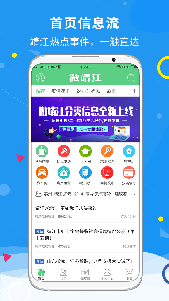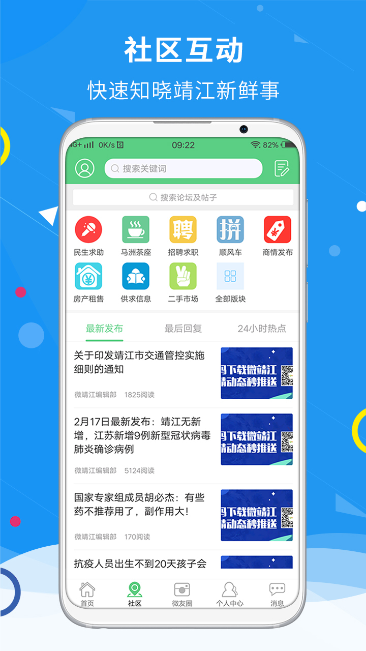 微靖江论坛是一个集生活资讯、人脉关系为一体的靖江极具人气社区。每天有超过50万的同城用户在微靖江论坛讨论本地热点新闻、爆料八卦、研究身边美食、晒出生活美图、分享旅游攻略,足不出户,一键了解靖江事。找房子、找工作、玩摄影、秀宠物、征婚交友,下载微靖江帮你快速找到靖江共同爱好的圈子。