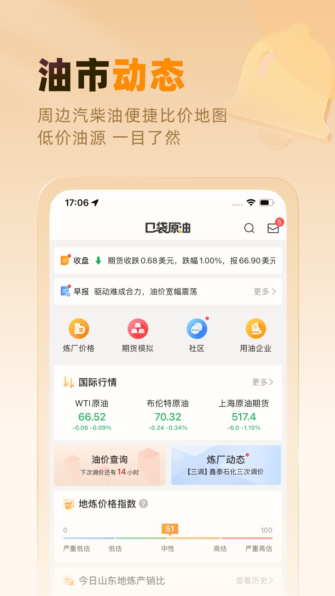 口袋原油是一款专为国内成品油(汽油、柴油等)产业链用户打造的应用。我们的用户群体包括期货投资者、主营炼厂、地方炼厂、成品油贸易商、加油站、工矿主、建设工地主、物流园区货车主等等,涵盖油品上下游各个环节的讯息,我们提供以下服务: