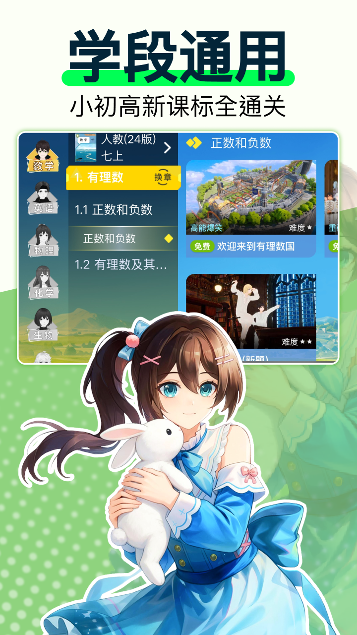 欧拉AI学面向小学、初中、高中全学段学生,囊括数学、物理、化学、生物、英语和语文 6 大主科,适配全国多版本教材。凭借3D动画视频技术,融合丰富剧情和特有IP,打造超有趣的二次元动画课程,让学习不再枯燥,知识吸收so easy~