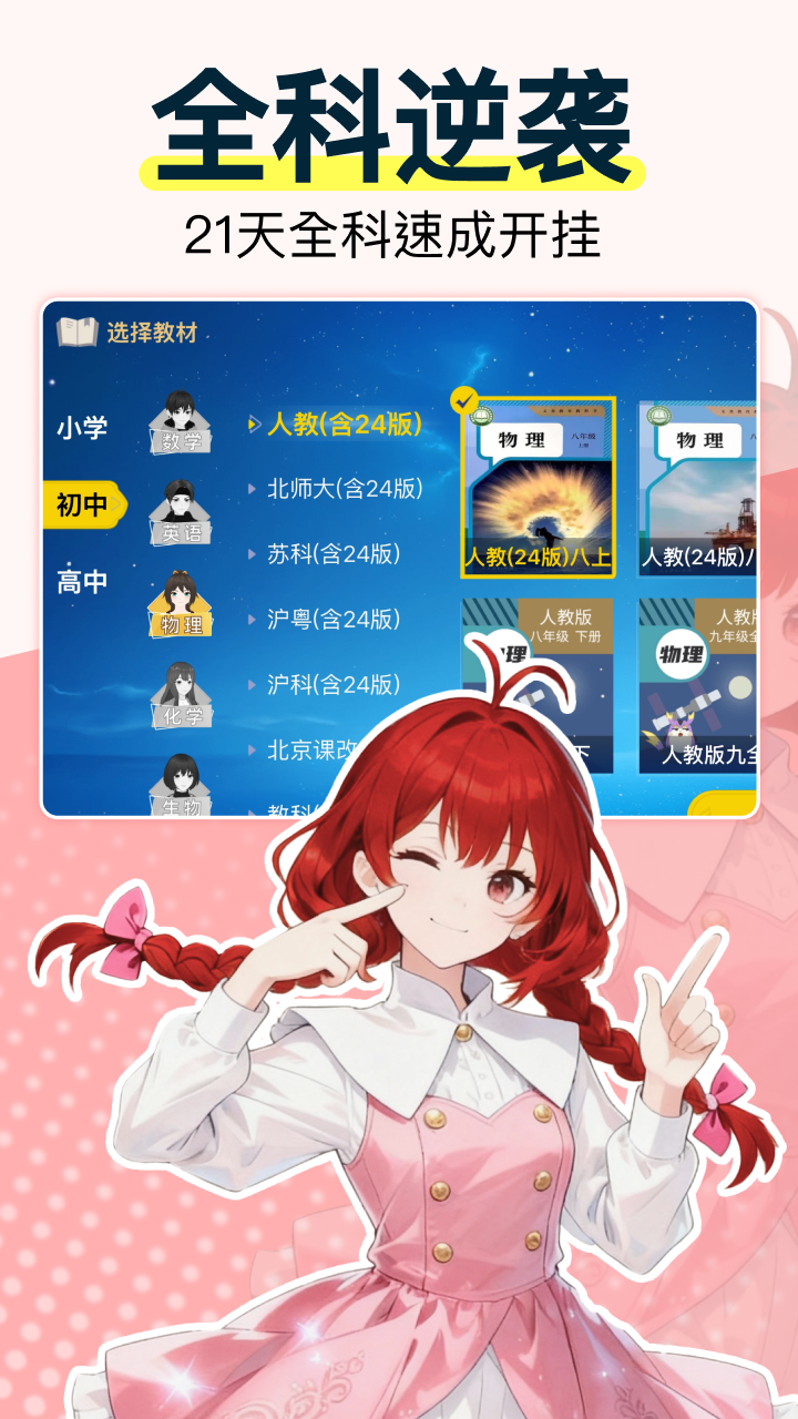 2、校内同步超省心:小学、初中、高中各学科课程全覆盖,不管你是夯实基础,还是冲刺学霸,都能满足!