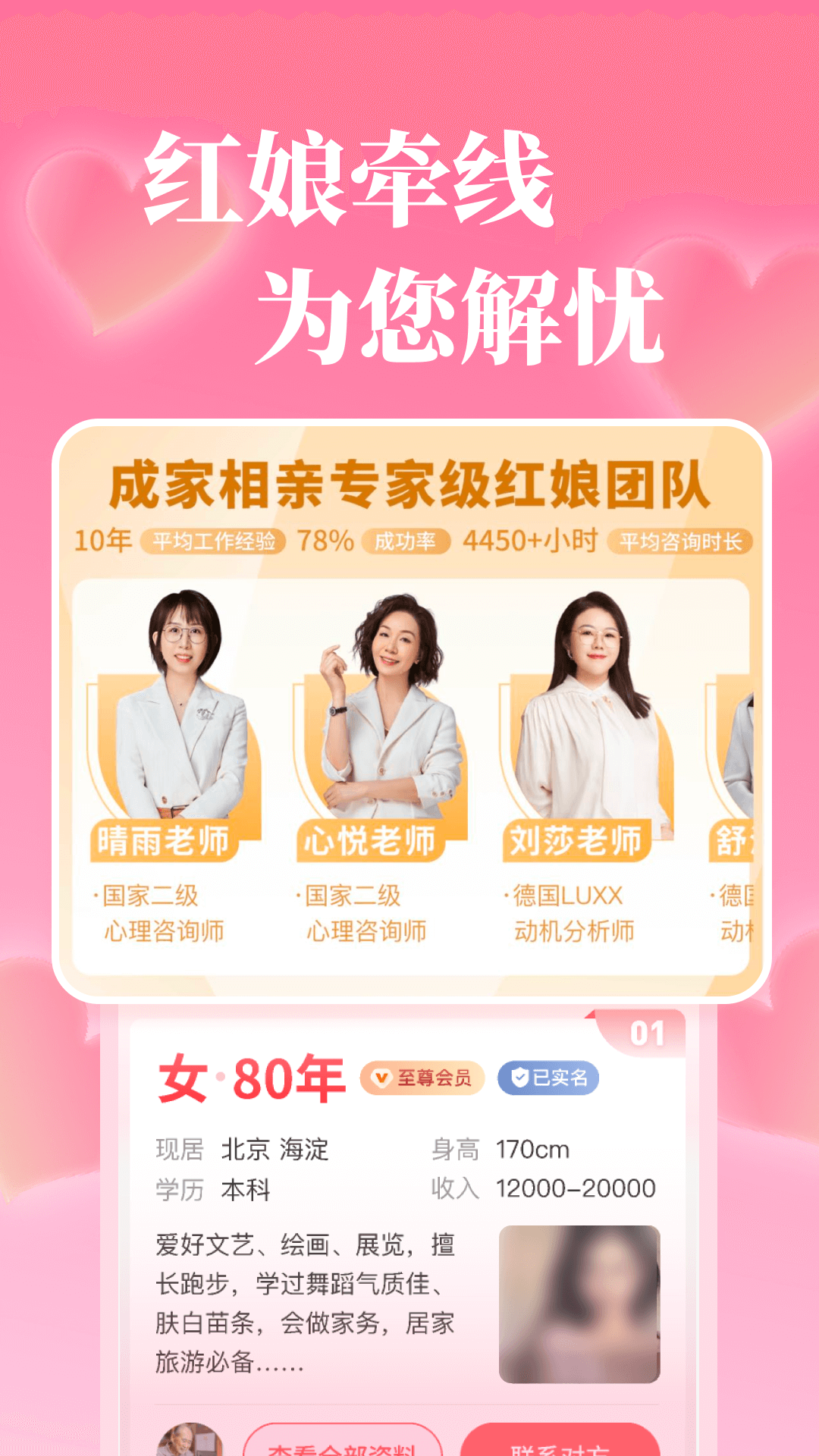 父母帮孩子找对象,就来成家相亲,上千万中国父母的选择,资源更多,推荐更准,服务更好,脱单更快!