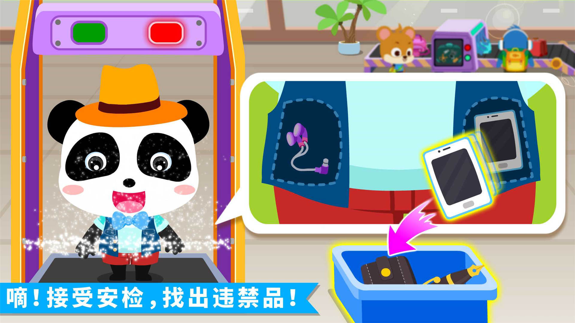 机场商铺升级,快去逛逛。在服装区,各色服装自由选;精选零食区,丰富美食满足味蕾期待;还有纪念品,企鹅摆件、熊猫水晶球……宝宝可以任选。