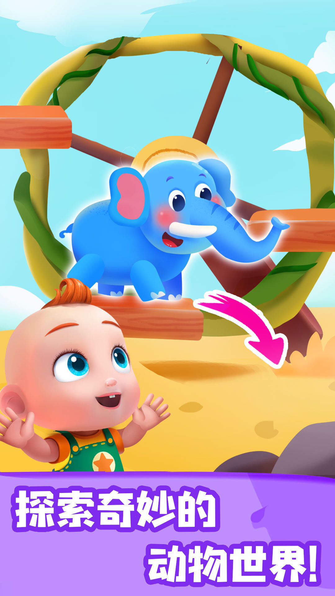 在这里,宝宝可以帮大象过山崖、帮小兔子拔萝卜、和小松鼠一起摘松果。通过趣味的益智互动,直观地感受动物们的外形、习性、行为特征。让宝宝牢牢地记忆动物们的外形和名称。