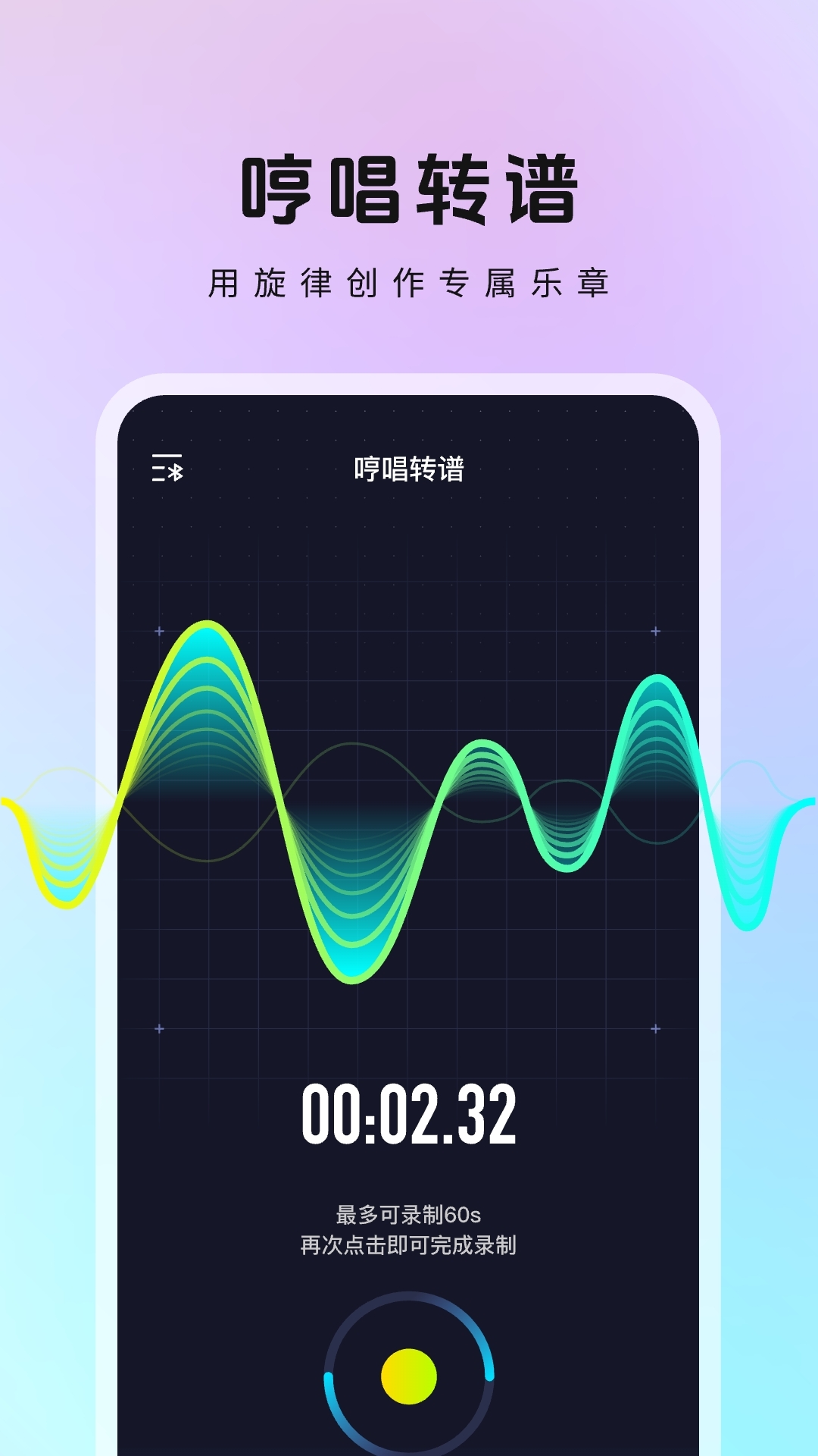 5. 哼唱转谱:用户在APP上哼唱一段旋律,AI可根据旋律为生成一首吉他指弹版本的纯音乐,并会将音频转化为可在Melo-D智能吉他上演奏的曲谱