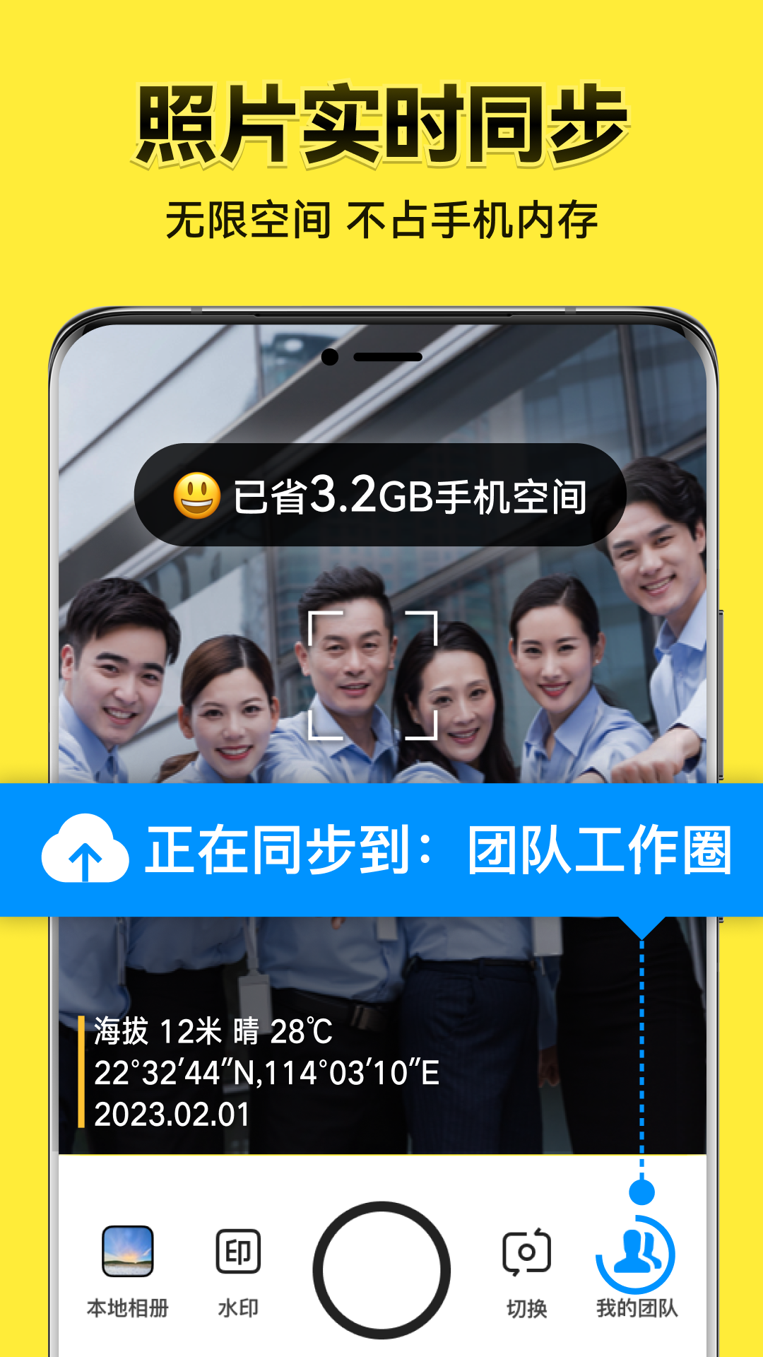 *拍照、拍视频,自动同步到团队