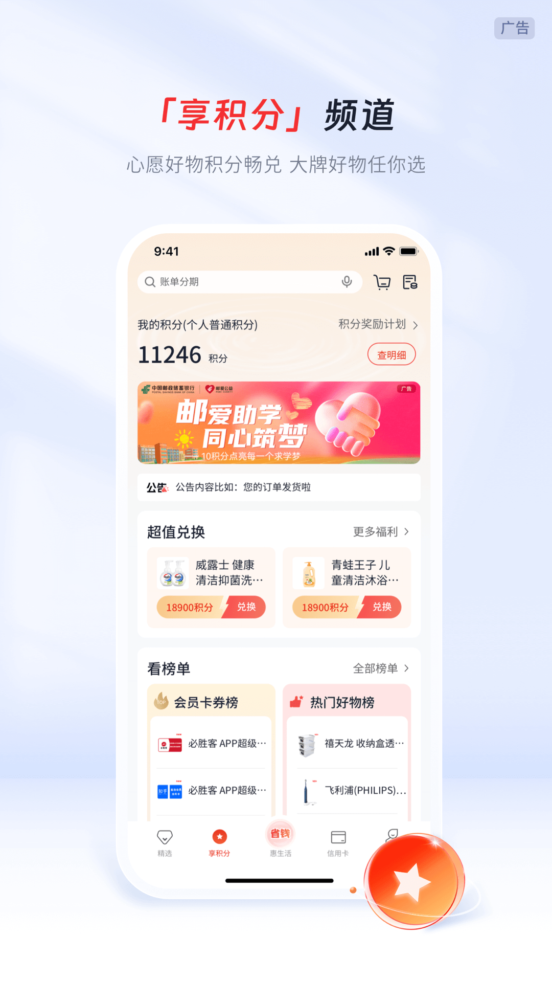 【精选】:生活场景一应俱全,“邮储小绿卡逛到就省到”、活动中心、选卡专区等更多精彩享不停。