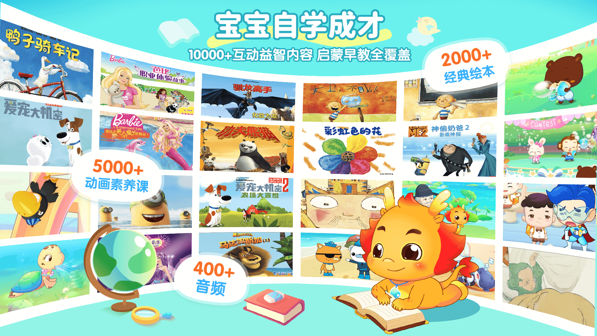 与【小伴龙】的每一次探险,让孩子在好玩的冒险旅程中自学成才收获好习惯、语言与思维启蒙。内含近万款适合0-12岁孩子的儿歌动画、益智启蒙故事和欢乐互动等高品质内容,陪伴孩子度过一个快乐的童年。