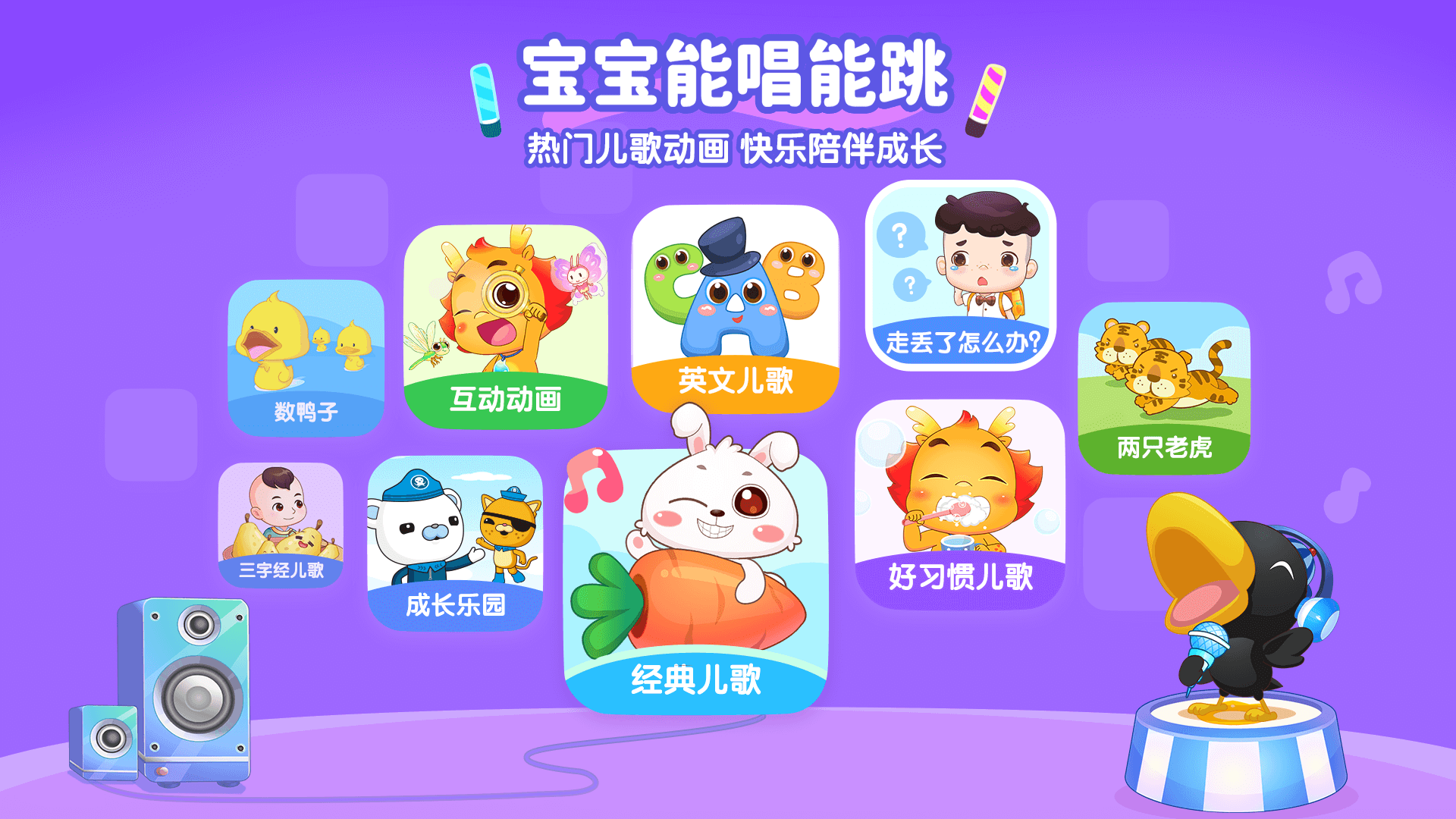 【动画】朗朗上口的生活好习惯儿歌,培养宝宝的安全好习惯、卫生好习惯、哄睡叫早,热门儿歌《一起学跳舞》《小星星》《幸福拍手歌》《大象踢踏舞》《三字经》《摇篮曲》等音乐,培养孩子的艺术兴趣,让孩子爱上才艺展示。从近万部视频课中挑选优质内容,覆盖文学、思维、艺术、自然科学、天文地理、历史典故、生活常识、自我提升等8大领域,为儿童启蒙阶段所需知识、以及生理和心理健康成长提供强有力的支持。
