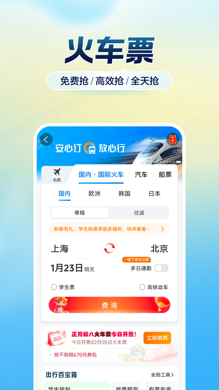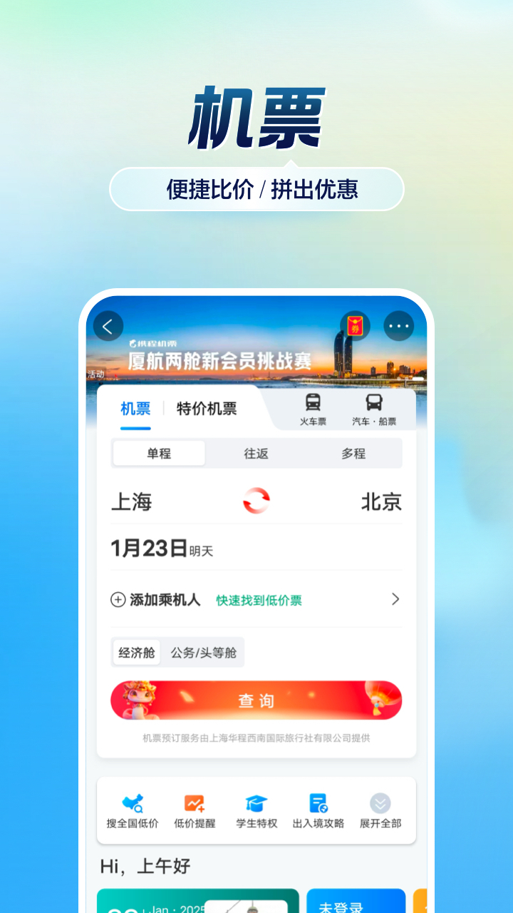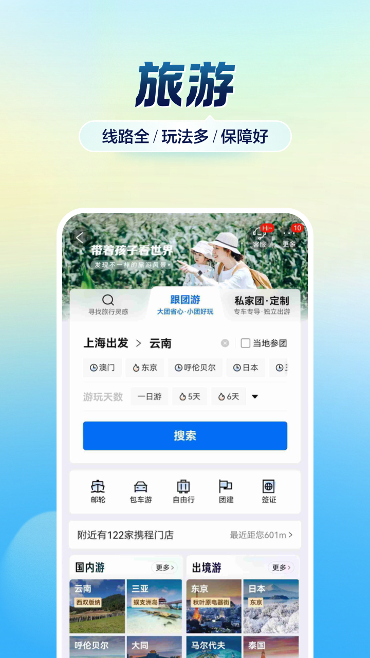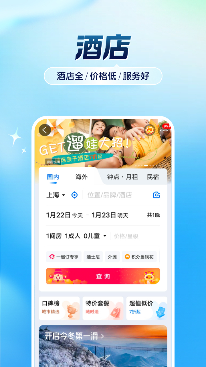 随时随地预订酒店、机票、火车票、汽车票、景点门票、用车,跟团游、周末游、自由行、自驾游、邮轮、旅游度假等产品!畅享旅游攻略。出行、旅游不用愁!