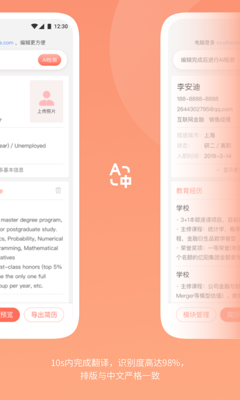 -【简历制作】增加大量风格简历模板,优化一键排版,一键简历翻译,简历评测