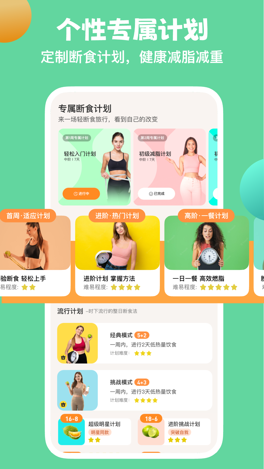 【轻断食核心功能?】- 量身打造断食计划; - 全面断食追踪器; - 断食周报详情分析;- 追踪减重和断食状态; -科学食谱专属定制; - 跟踪断食历史和图表记录;- 配合锻炼版块组合拳,助力更快瘦身。