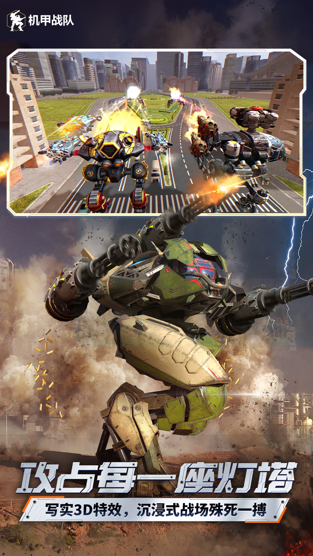 机甲战队是一款6v6多人联机射击对战手游。玩家作为指挥官,通过控制机器人夺取灯塔、摧毁敌方机器人来扩张领土,在对战中获胜。游戏中含有多达70种不同移速和生命值的机器人,以及海量武器可供玩家自由选择搭配,高自由度打造对战武器。为应对奇袭、错综复杂的战术机动和敌人的诡计做好准备。毁灭!占领!升级!变强——证明自己是机甲宇宙中最优秀的机甲指挥官!