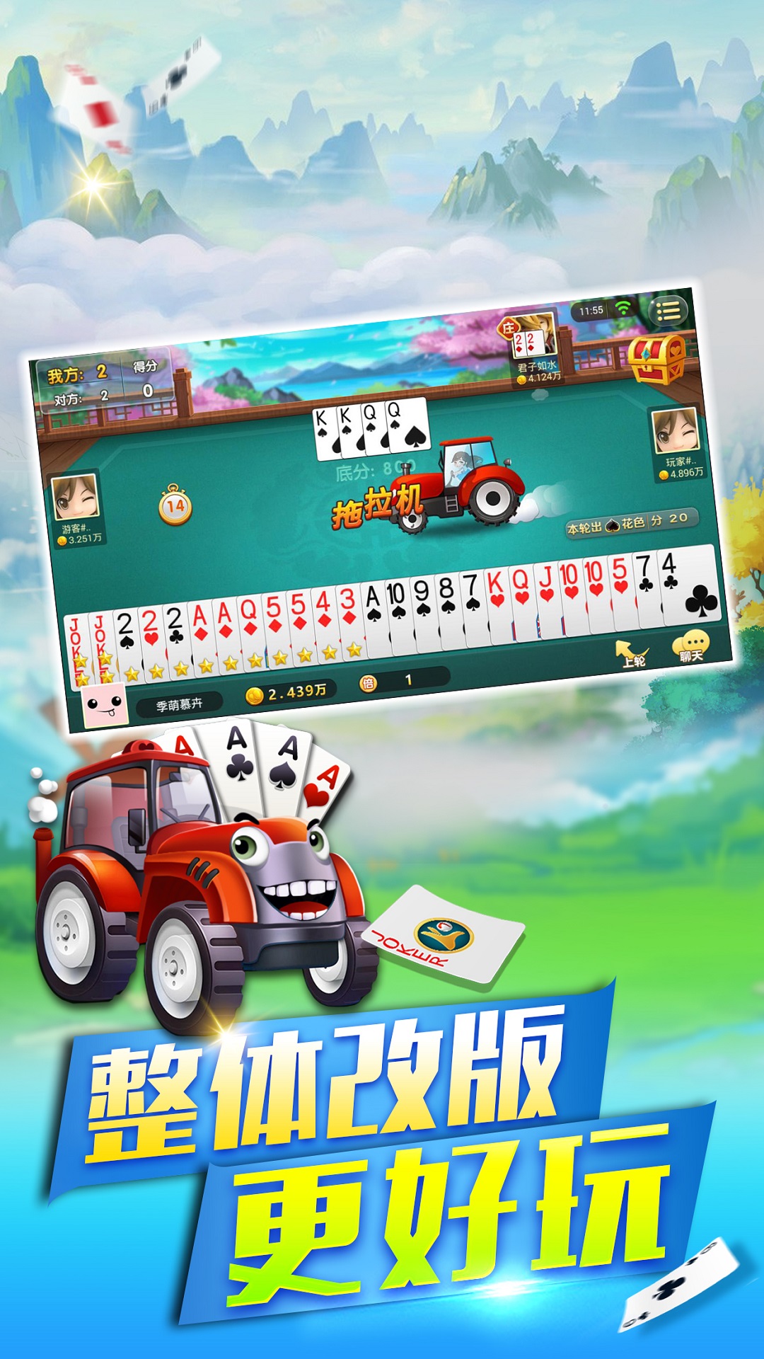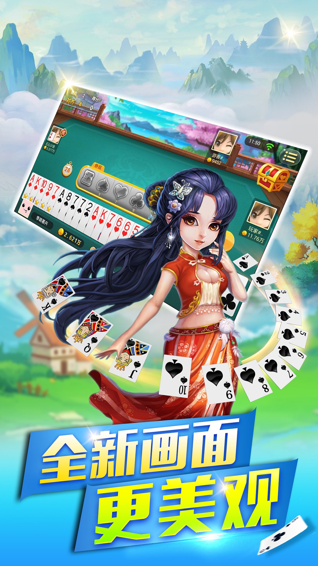 3、增加取消对底牌压分的限制,使牌局的变化更为丰富。