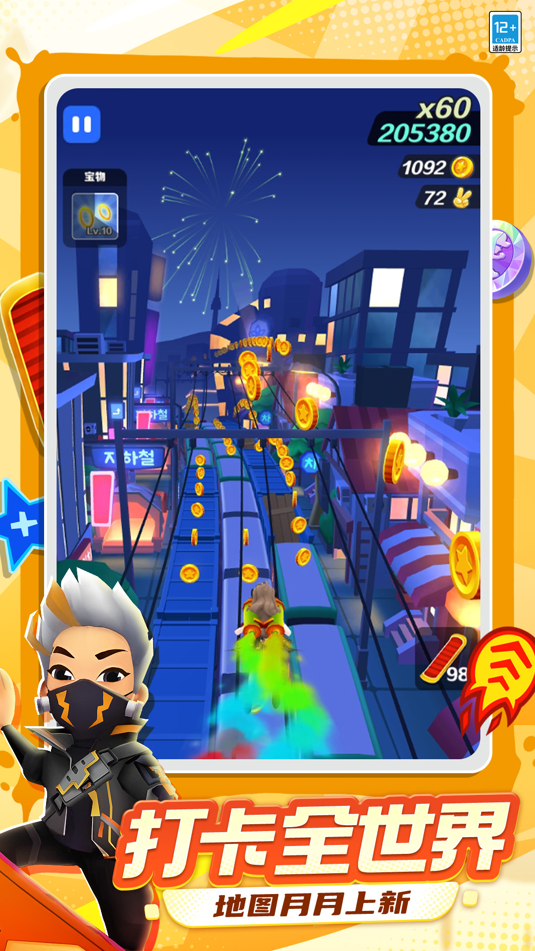 《地铁跑酷》首尔赛季震撼登场!流光夜景地图炫酷上线,高楼灯火与霓虹街景交织,带你在摩登都市尽情冲刺!《地铁跑酷》 × 以闪亮之名梦幻联动开启,累计签到 7 天即可免费领取限定角色 「闪亮闪闪」!「沈泽」与「苏晚」携手亮相星光跑道,顶流爱豆「林沐阳」与「夏星瑶」强势集结,全员齐聚首尔,颜值爆表,震撼全场!主唱、主舞两大阵营火热招募中,谁才是你心目中的No.1!滑板系统全新升级,超多搭配与全新跑酷冒险等你来体验!星光跑酷之旅,即将出发!