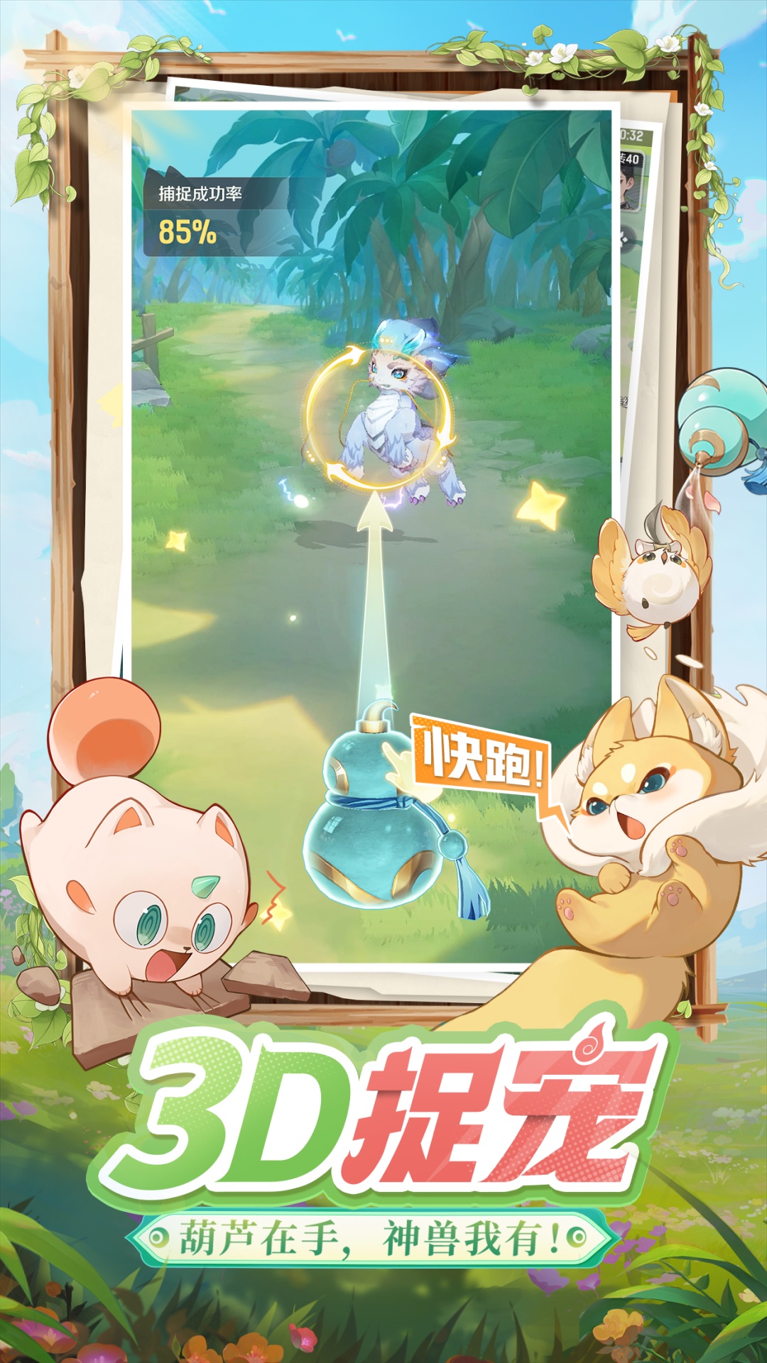 与各色灵兽相遇,用葫芦将其通通收走,陪你大冒险!