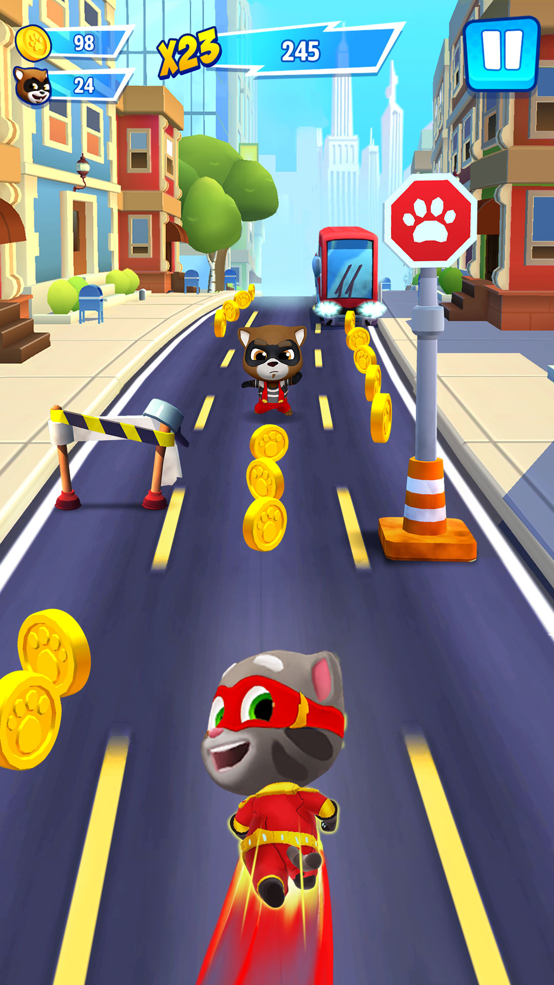 《汤姆猫英雄跑酷》由“会说话的汤姆猫家族”IP团队重磅推出。 汤姆猫和安吉拉将变身为超级英雄,跨过各种障碍,打败浣熊,拯救家族的小伙伴。 赚取金币和钻石,重建家园;还有持续更新的场景地图。 楼顶秋千、惊险龙背、中国古城、热带沙滩,都无法阻挡英雄们前进! 游戏特色: 1、“会说话的汤姆猫家族”IP团队重磅新游。 2、开放城市、热带沙滩、中国古城、埃及等多个跑酷地图,在楼顶秋千、龙背和城市街头上跑酷,惊险不断。 3、赚取资源,重建家园。 4、IP系列首次推出英雄主题的角色造型和皮肤。 5、多种限时特色活动。