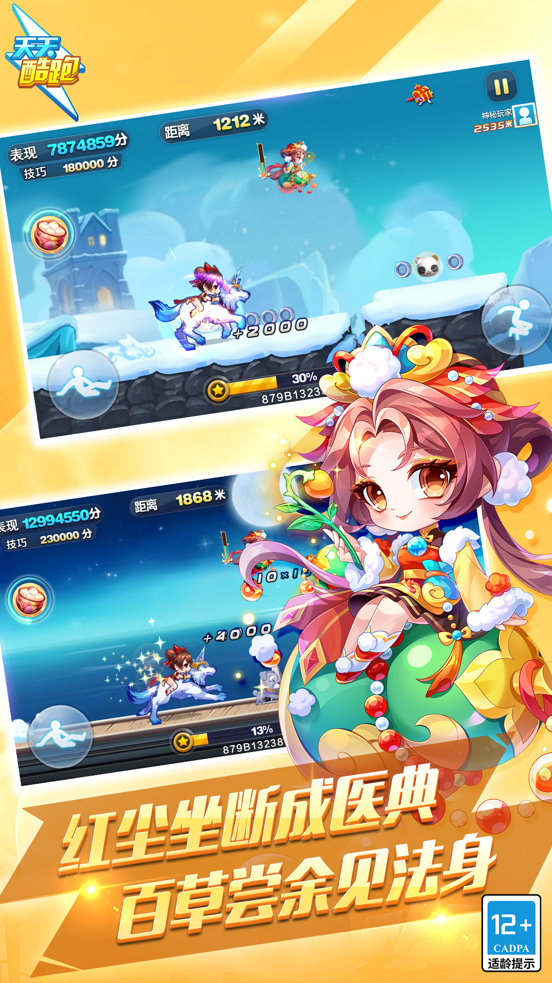 《天天酷跑》是腾讯游戏研发的一款休闲类手机跑酷游戏,在沿袭传统玩法的基础上,特别加入了闪靓坐骑、萌动宠物等一系列心动设计,为玩家带来最为得心应手的跑酷体验!