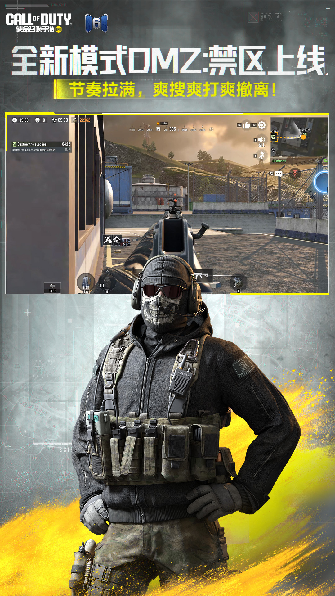 全新玩法—DMZ: 禁区:战士们可选择在地图上自由探索、完成合约任务获取奖励、与敌人与其他小队交战,最后在限定时间内成功撤离。